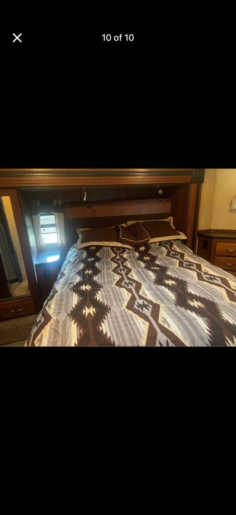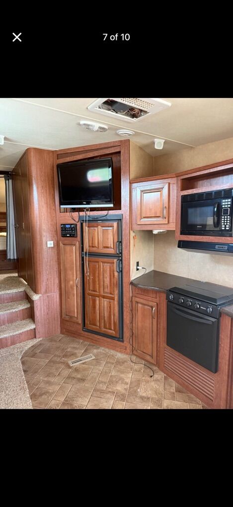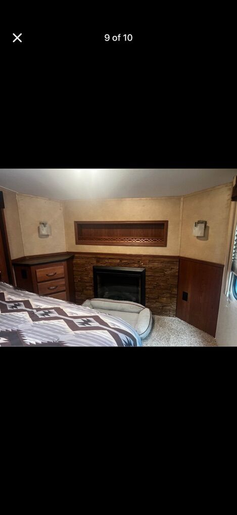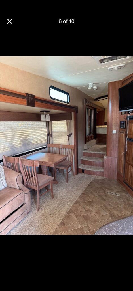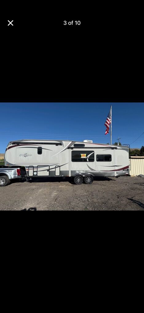 Trailer is in really good shape, new roof 1 1/2 years ago.  motorsport land did the work, i do you have paperwork on it. Does have a receiver hitch in the rear to pull a small trailer behind the fifth wheel.