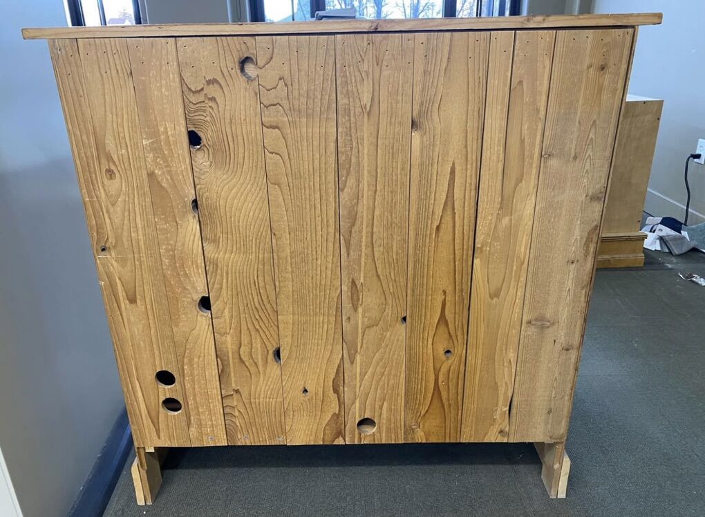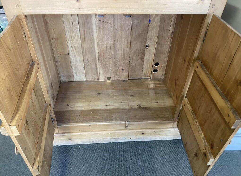 VenmoSolid Alder Double Doors Cabinet/ Entertainment 42W x 21-3/4 D x 42”H Back holes for cord management Worn but easy to fix up if intent