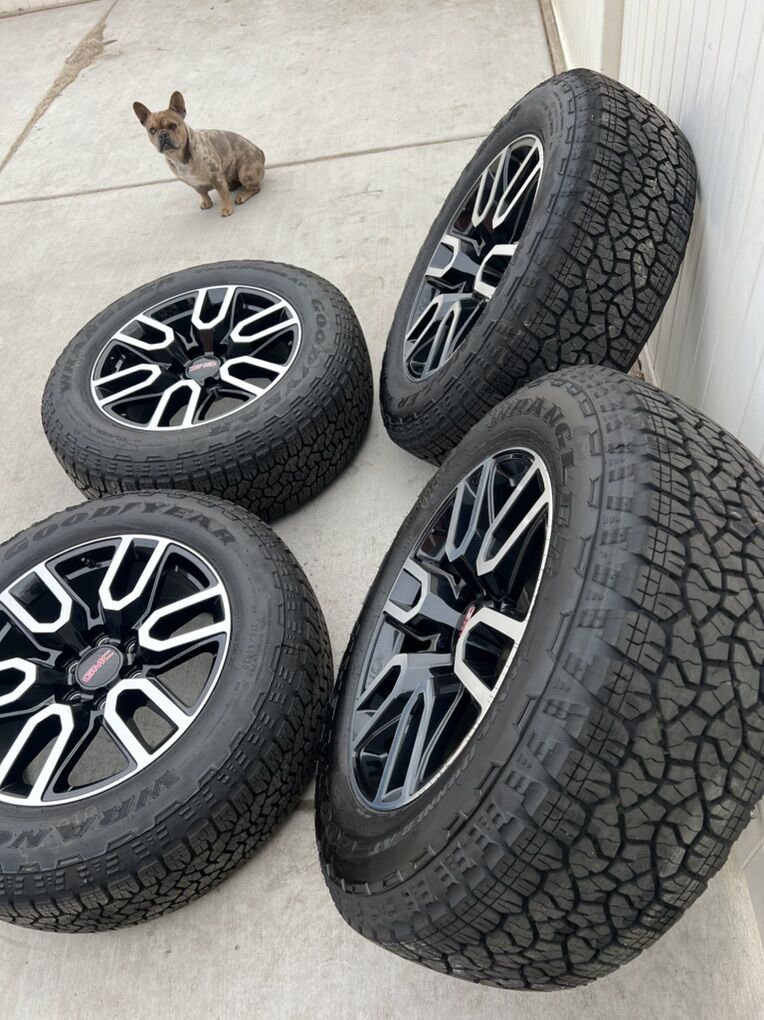 Selling my brand new gmc at4 takeoffs only 10 miles on them tires are 275/60r20 Goodyear wrangler trail runner A/T 6x5.5 lug pattern