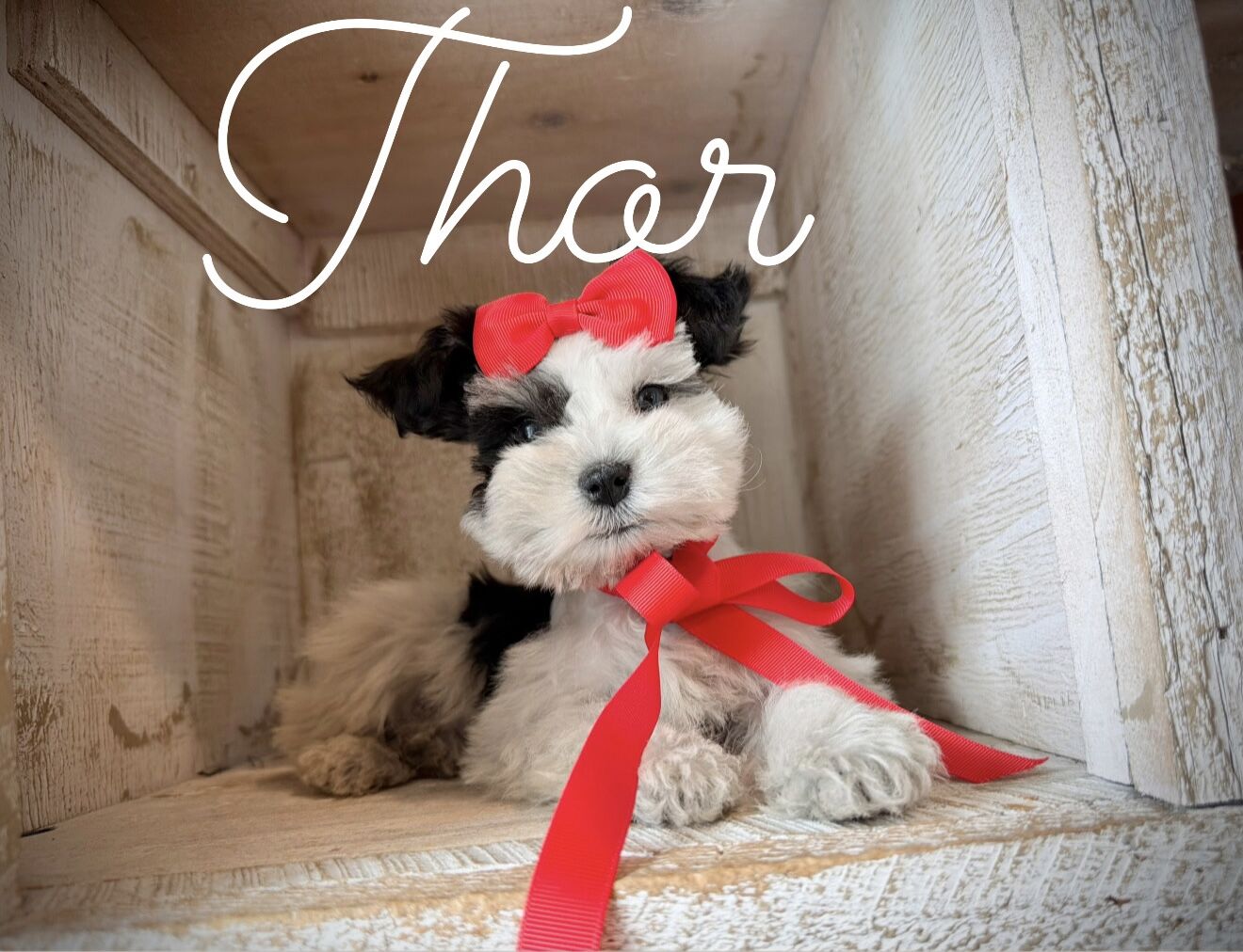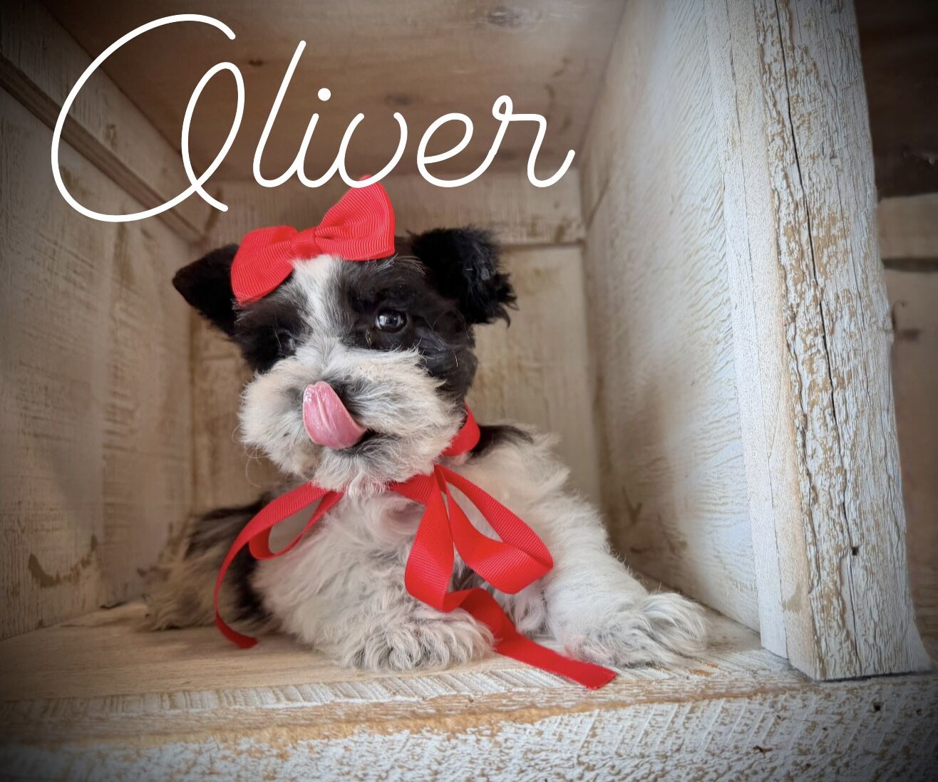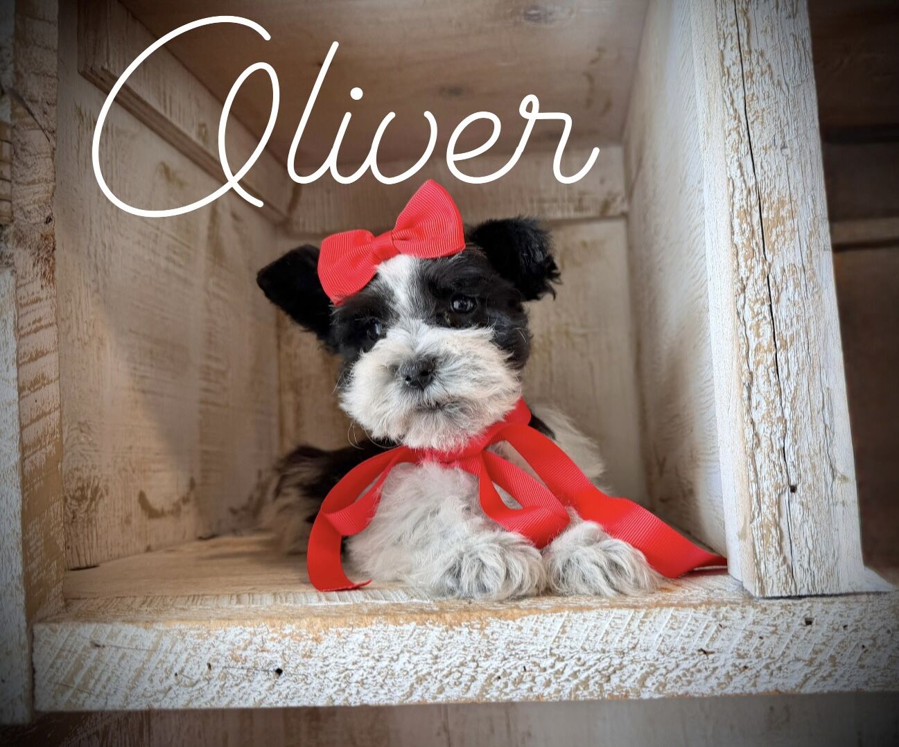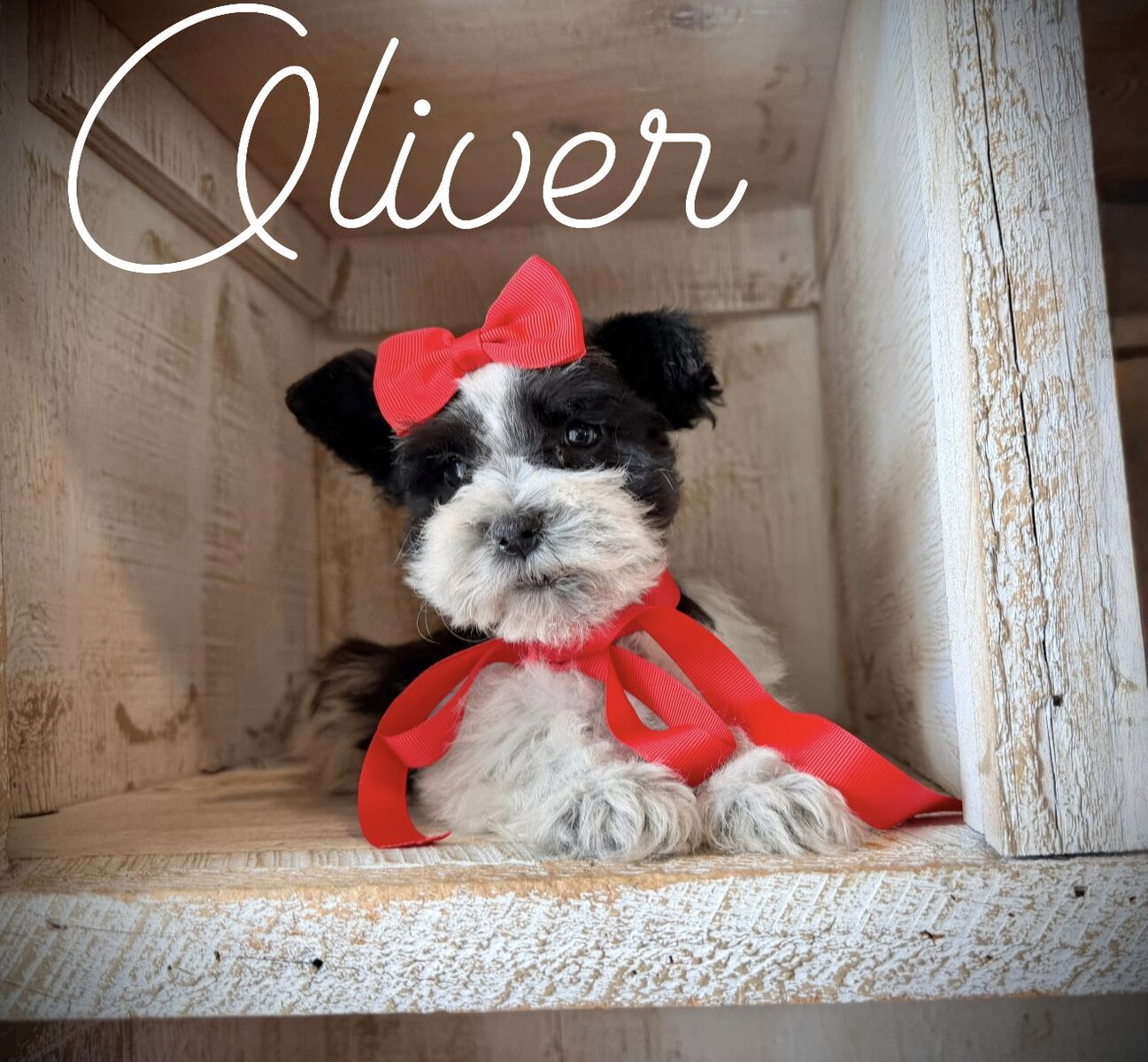 Oliver, Kobe, and Thor's mom is a rare chocolate Parti teacup -5.5-6lbs megacoated schnauzer. Sire is a rare micro teacup 4lbs Parti schnauzer.