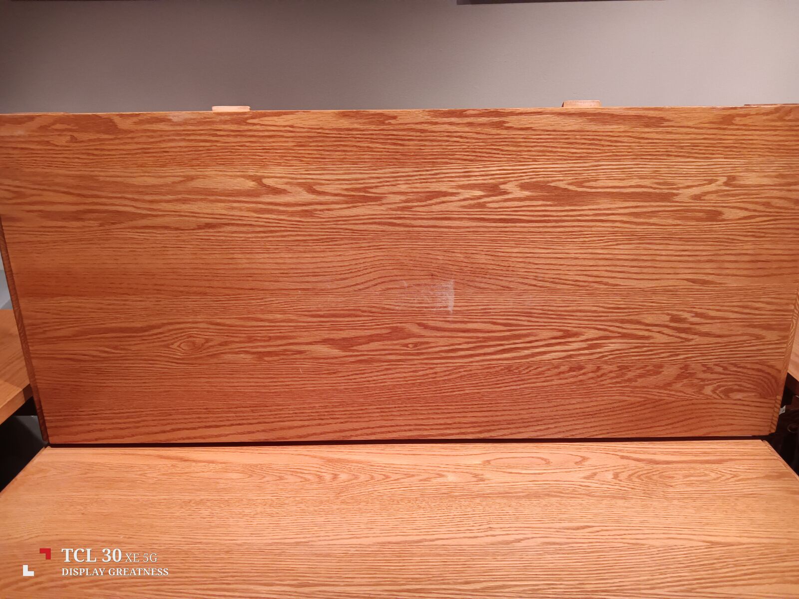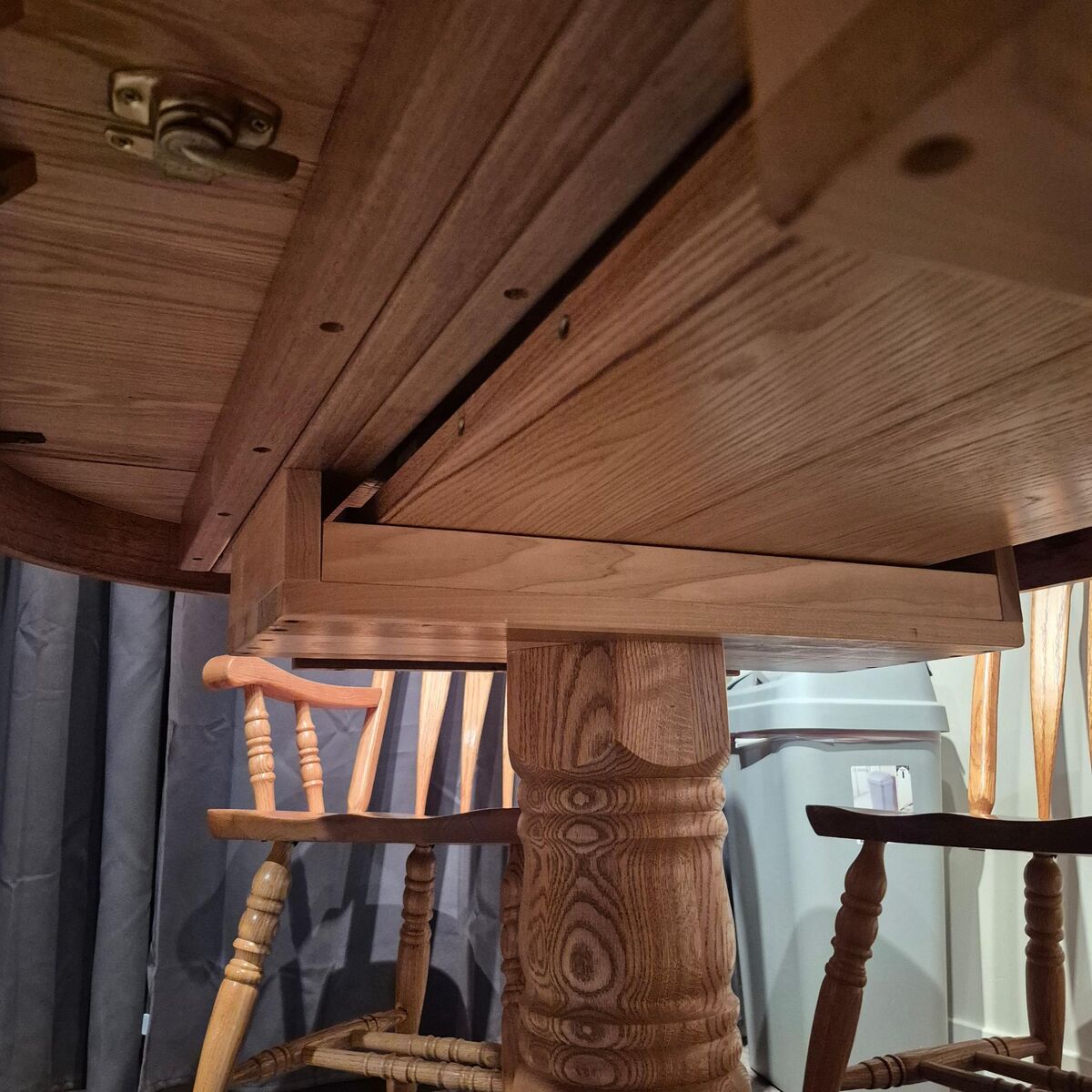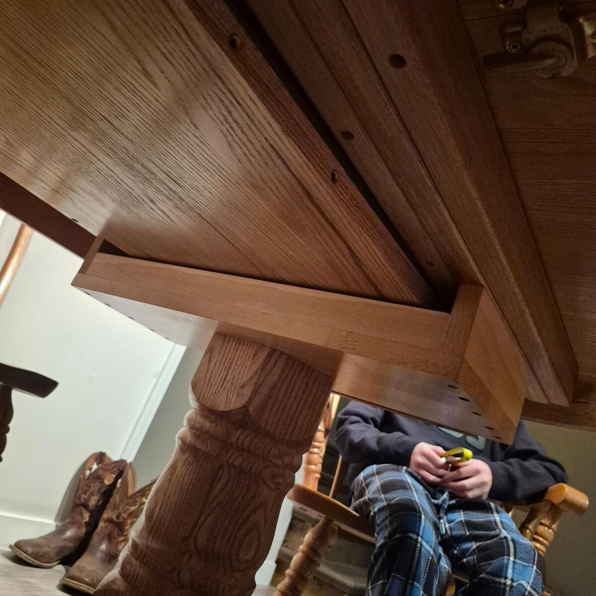 Heavy table not fake pressed wood,has two leaves for extension tops ar in excellent condition have a cover for the top that has always been used to protect the surface of the table,solid table chairs are all in great shape their are six chairs two have arms,you pick up any time after 5pm is best ,CASH ONLY.