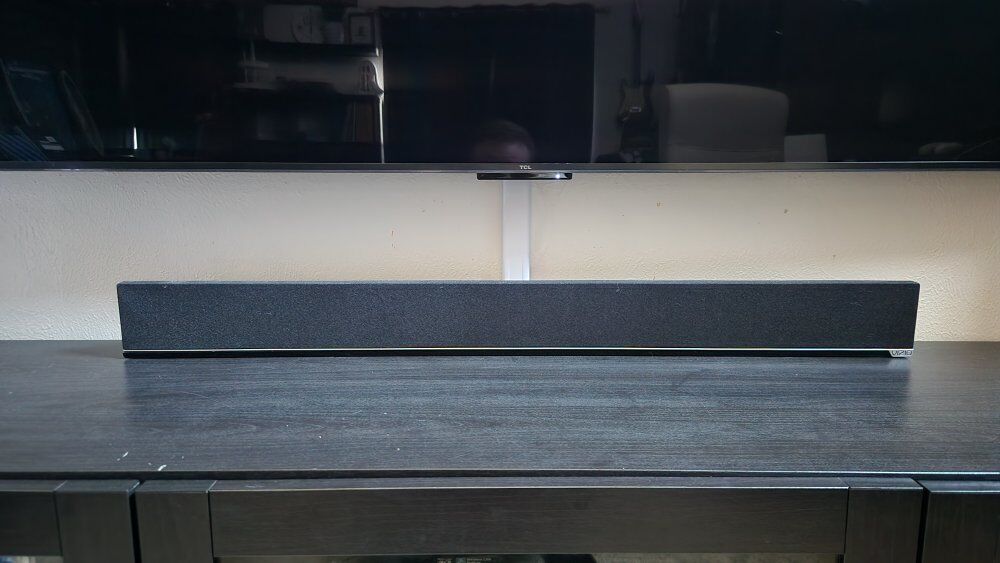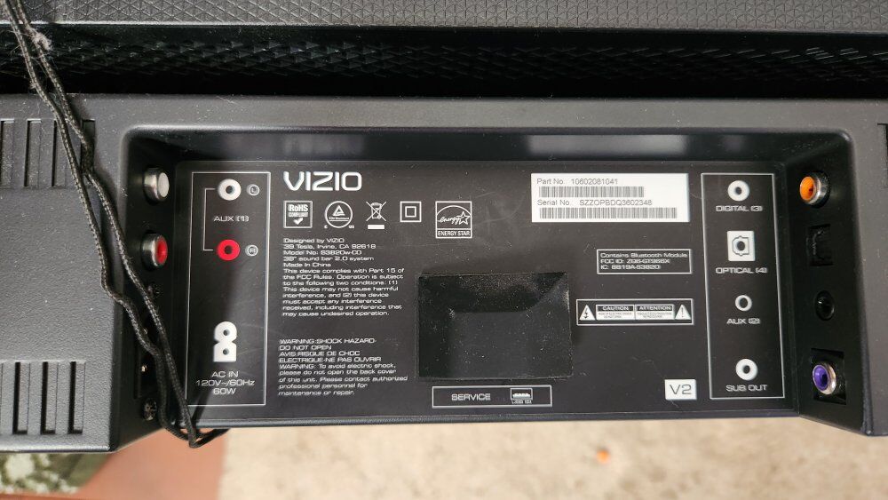 The Soundbar is a Vizio 38" 2.0 channel that sounds great. I use it with a huge Onkyo subwoofer making it a 2.1 system. The sub gets LOUD.