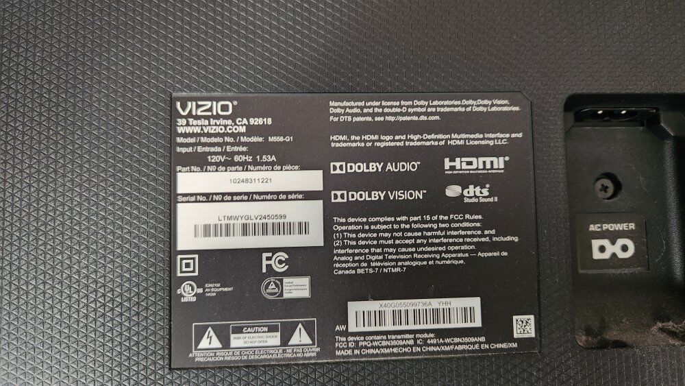 TV is a 55" Vizio M-Series M558-G1. This was a really high spec'd TV that has local dimming, HDR, and Dolby Vision. I've been using it with a Fire stick 4k max.