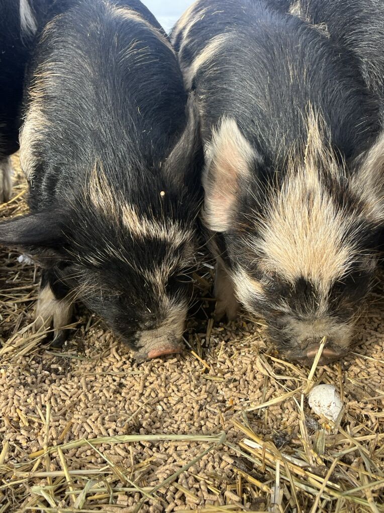 Sweet pigs, kids love them, dogs and cats run around them, parents sit for food, these guys are calm and teachable too