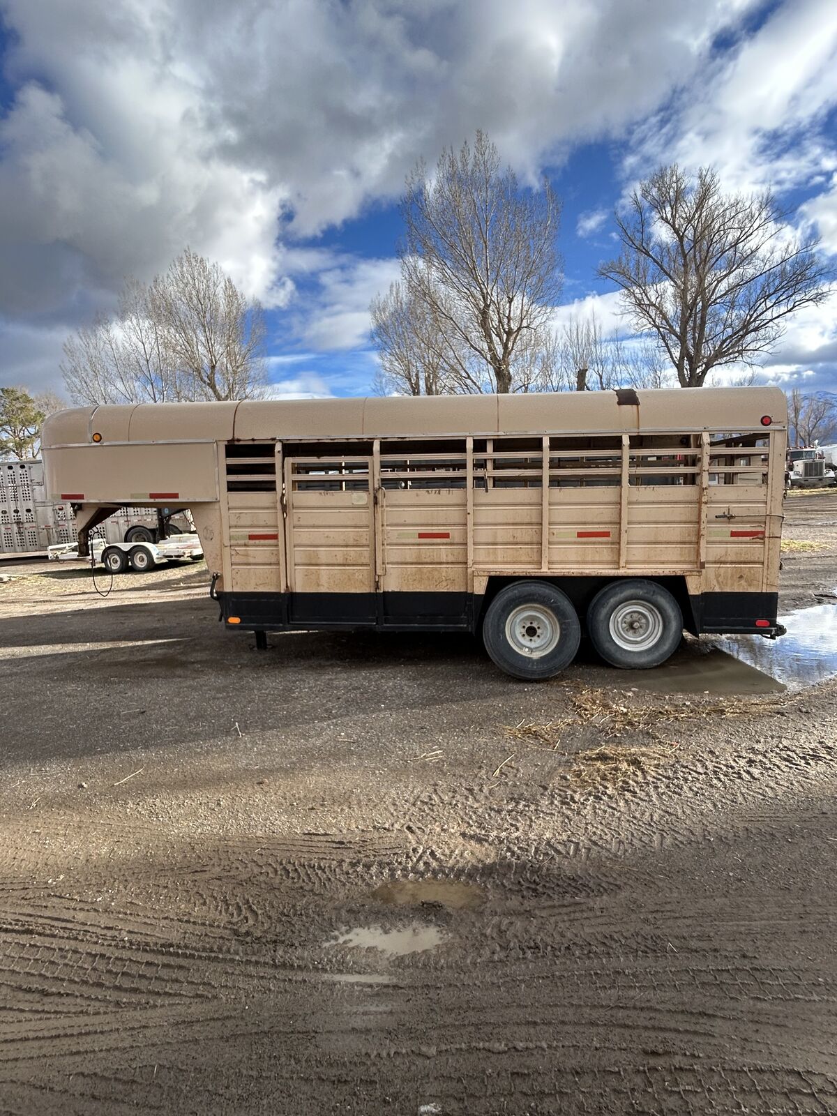 6 horse trailer. Center divider gate. Floor has been recently replaced, rubber mats. Sealed beam lights, 16 ply tires. Will consider trade for a good flatbed/tilt deck/ car trailer, would pay a bit extra if you have something real nice.