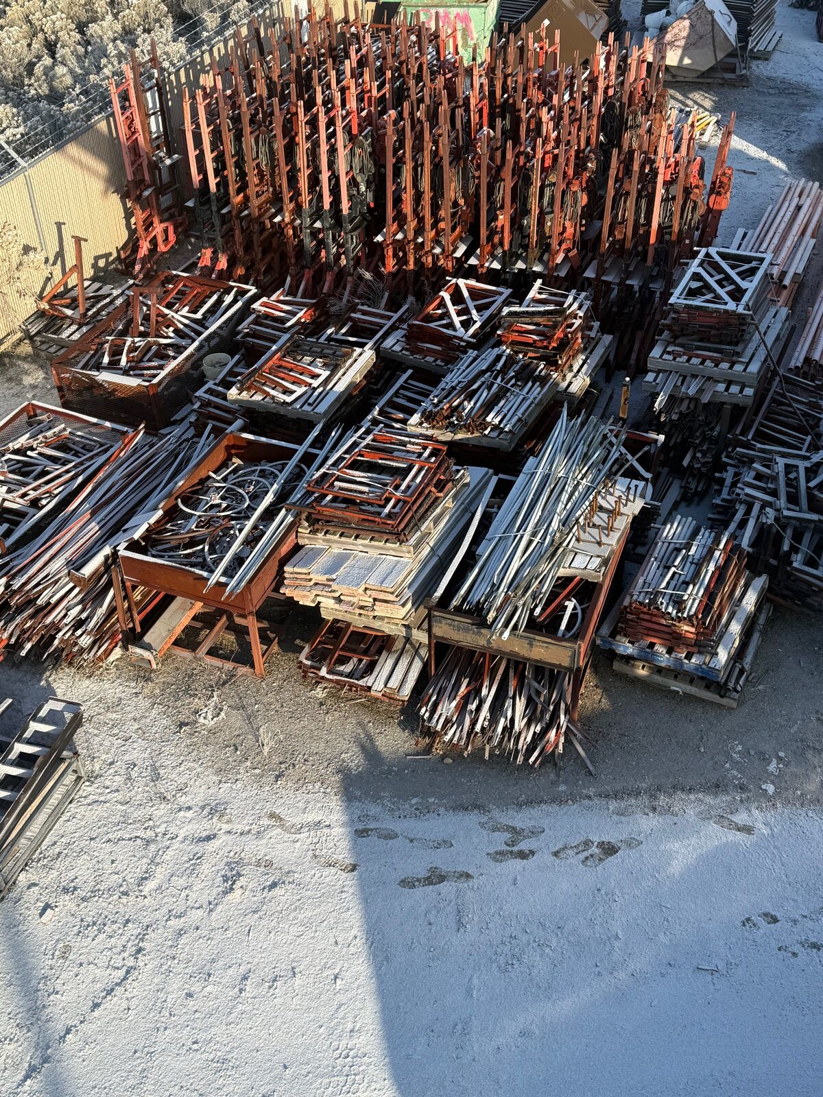 All the Mason arms, tender arms, x-braces with racks, ladders, 80-1/2'' plank for between frames for stock, cold weather protection frames, pick bars. Safety rail and posts, mason safety end gates, tender gates and crank down wheels.