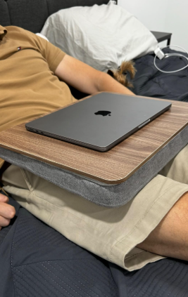 ZelleIDEAL DIMENSIONS for LAPTOPS: This laptop desk/lap table measures 17.1 x 12.8 x 2.5 inches, accommodating laptops up to 15.6 inches in size. When paired with laptops 14" or smaller, it provides enough surface area for a mouse. LIGHTWEIGHT & PORTABLE: Weighing just 2.7lbs, this laptop lap desk exerts minimal pressure on your legs and is effortlessly portable. Whether commuting to work or traveling, it's a convenient companion that you can take with you anywhere!