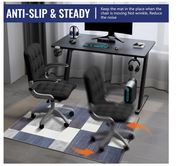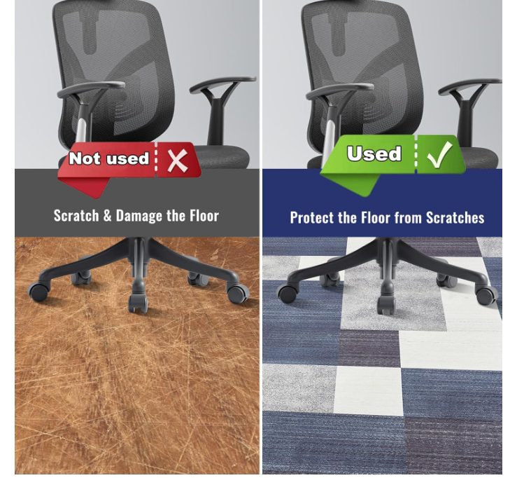 ZelleChair Mat with Sturdy and Enduring - The office chair mat for hardwood floor is made from synthetic recyclable polyester fibers measuring a dimension of 36”X48 ”and a thickness of 0.15 inches, which gives the chair mats a overall light weight, yet durable and robust surface. The office mat also reduces the noise made when the chair rolls and protects computer chair mat from being damaged by hard chair wheels, working perfectly in your home or office.