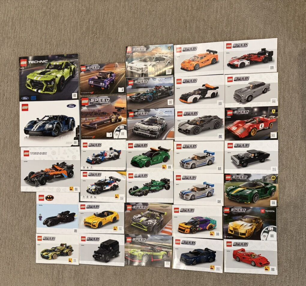 VenmoI’m selling these as a set but if you prefer a certain individual one let me know. I have all the instruction books for each car. There is 30 small ones and 5 bigger technic ones. 2 of the technic ones are started to be built but I only got to bag 1 on each of them. Also two of the smaller Lego cars are moded to be different than the original way it was supposed to be built. They are pictured in my very last slide (it’s an mr2 and a Porsche 911). I have most the stickers that go with each car as well I didn’t put them on. $1,000 OBO for the whole set. Around 1,500 vaule