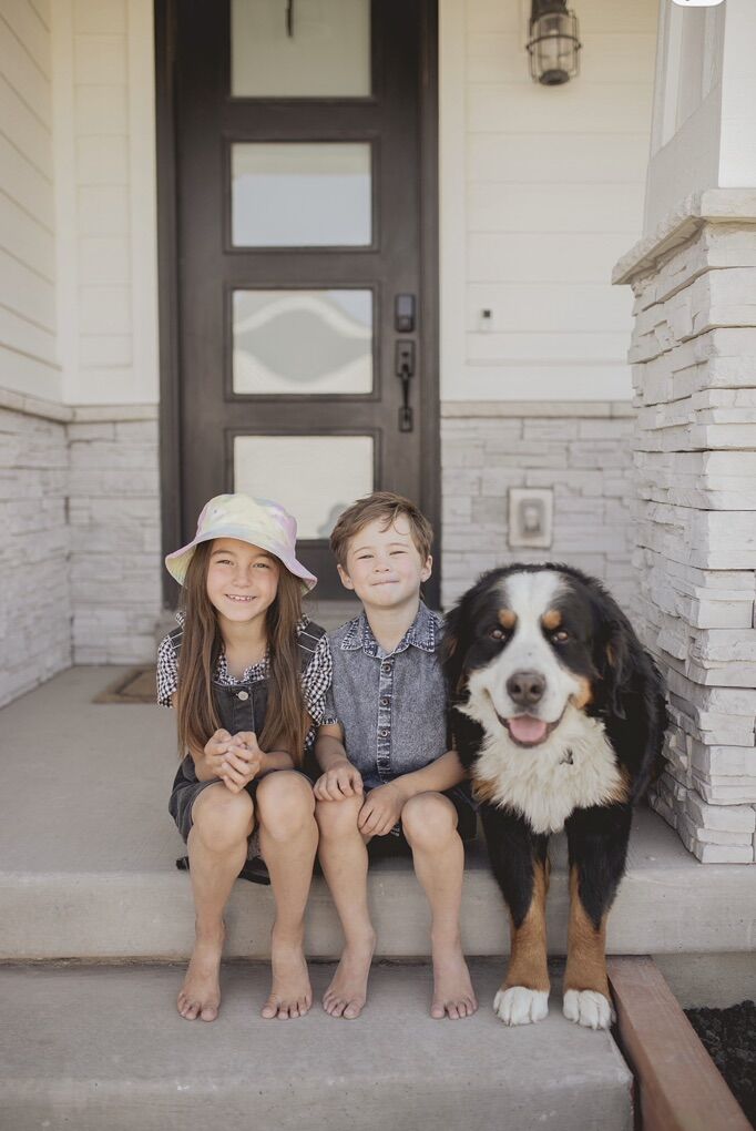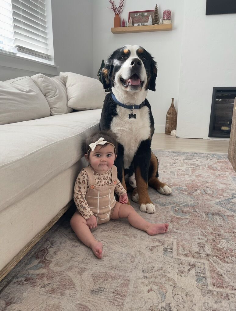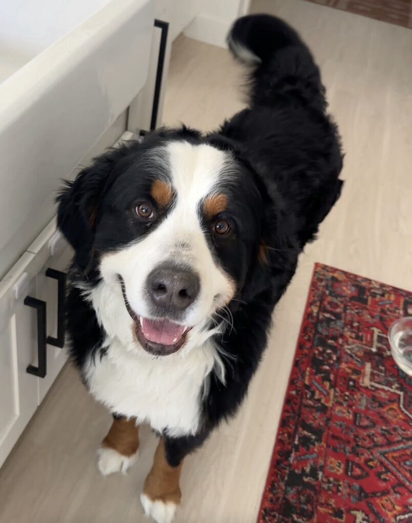Bernie is a proven, mature male with the classic Bernese look — a striking blaze, rich tri-color markings, strong, balanced structure and the coveted ‘Swiss Kiss’ — a small white spot at the nape, separate from the blaze — paired with an exceptionally gentle, steady temperament. He has been raised in a busy family home and is trusted daily with young children, babies, cats, rabbits, and chickens.