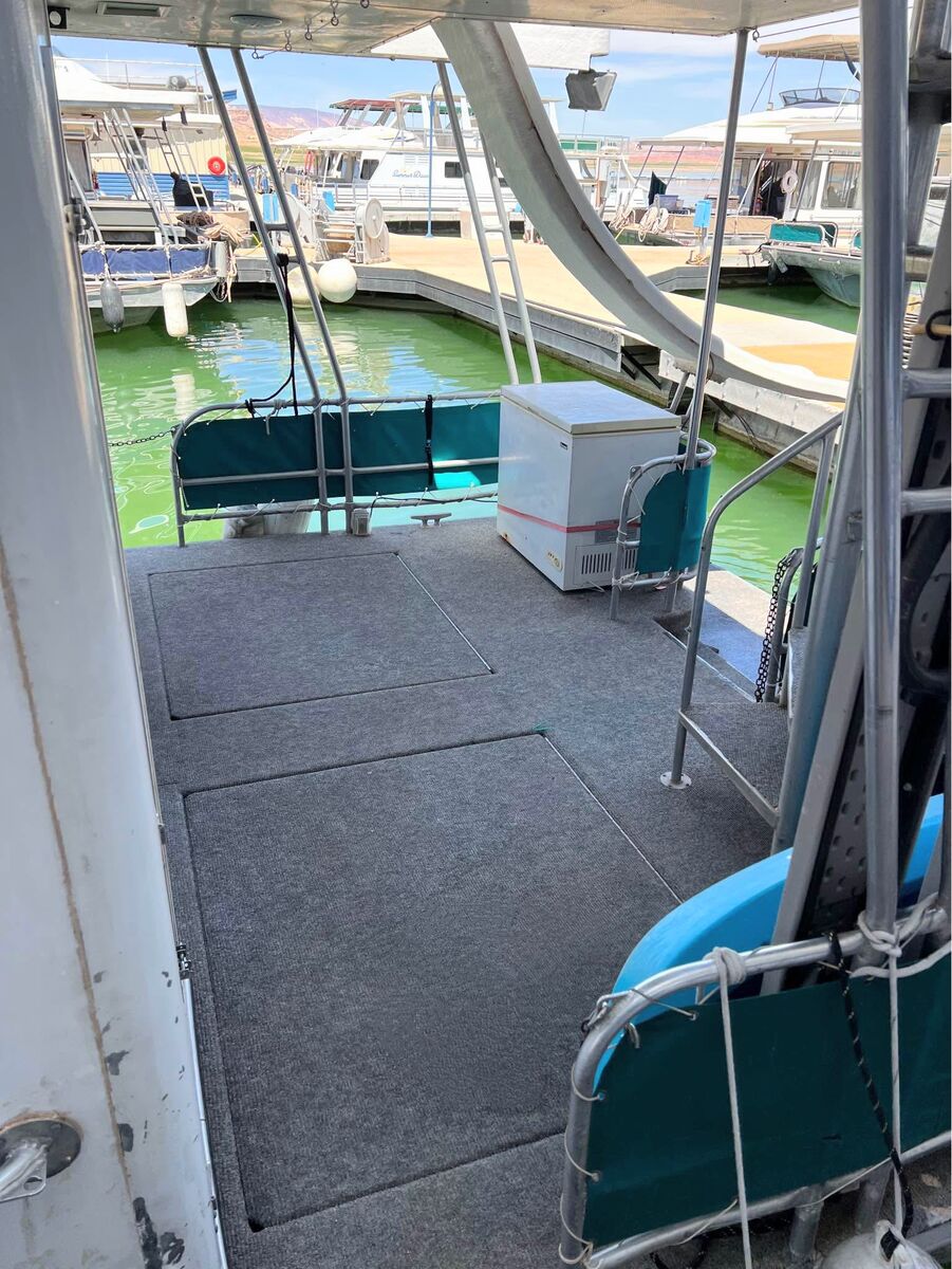 The boat has lots of upgrades and a great group of owners. Both motors are fairly new, as is flooring, etc. We added Solar and batteries 2 years ago and a full size residential fridge which is so much better than the small propane/DC fridges and we hardly ever have to run the generator. 200 gallons of fuel for the motors/gen and an extra 100 gallon toy tank as well.