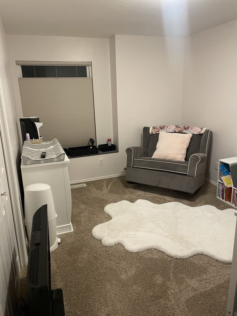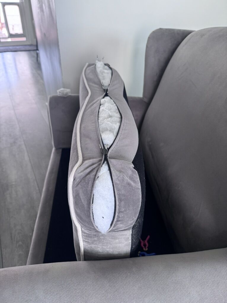 CashAppOversized gray rocking chair! Perfect for parent and older sibling to snuggle new baby! It does need a new zipper (see photos) or a chair cover if you don’t want to replace zipper! Had to take off rockers to get it out of the room, but are included. Will need a truck and muscle to load and pick up! $100.00 OBO text is best