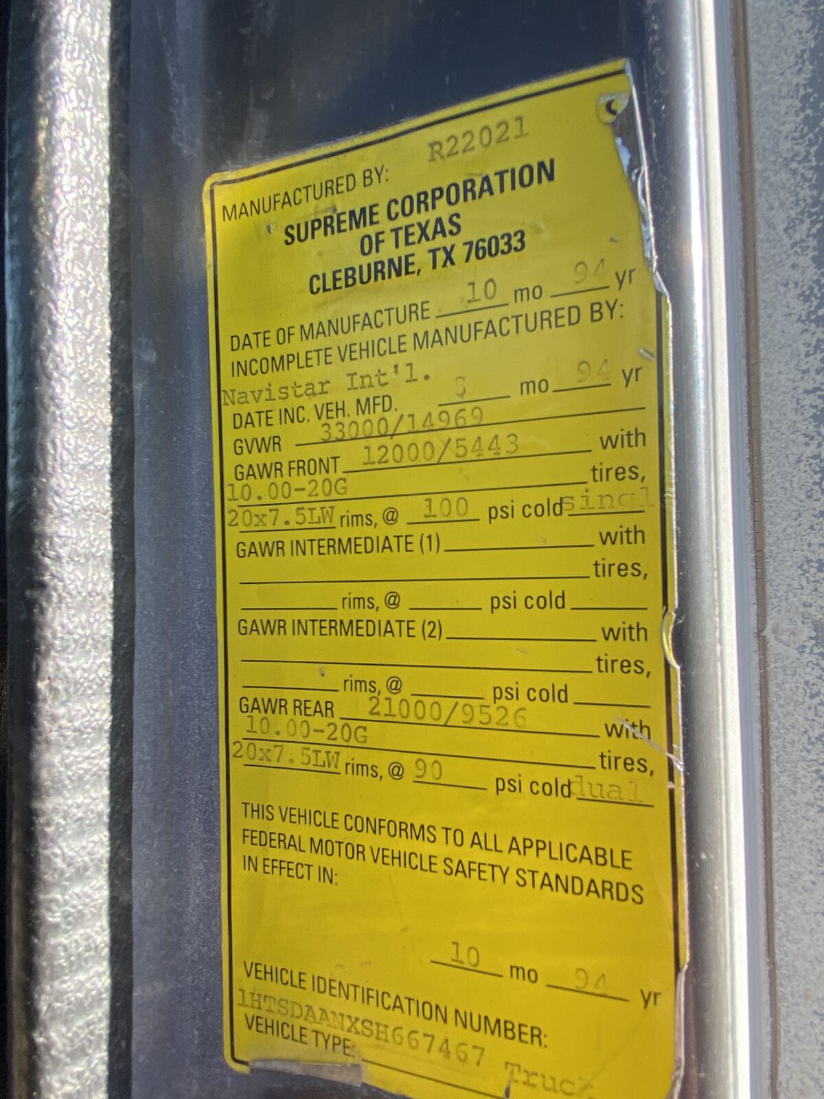 1994 International 4900 cab and chassis. VIN#1HTSDAANXSH667467