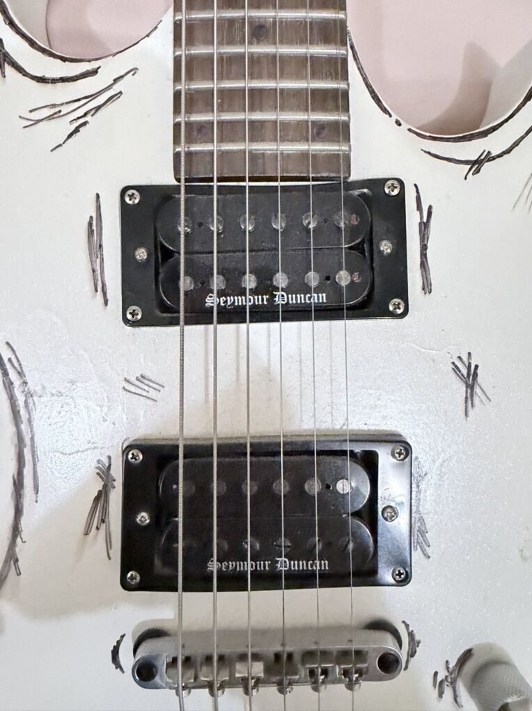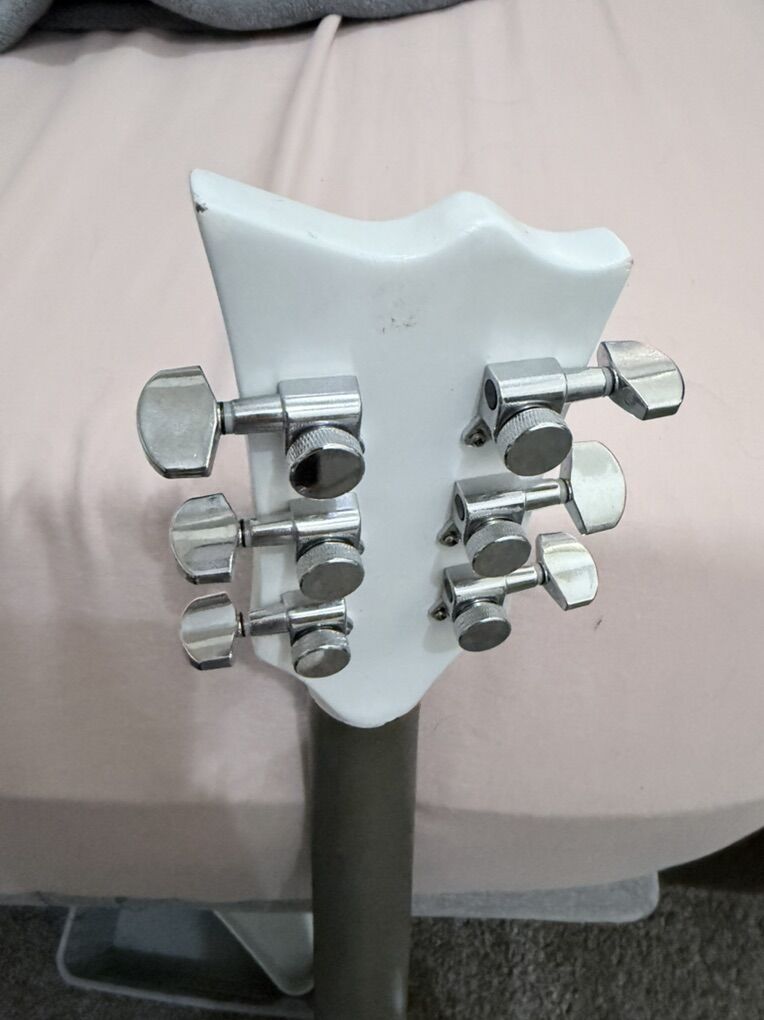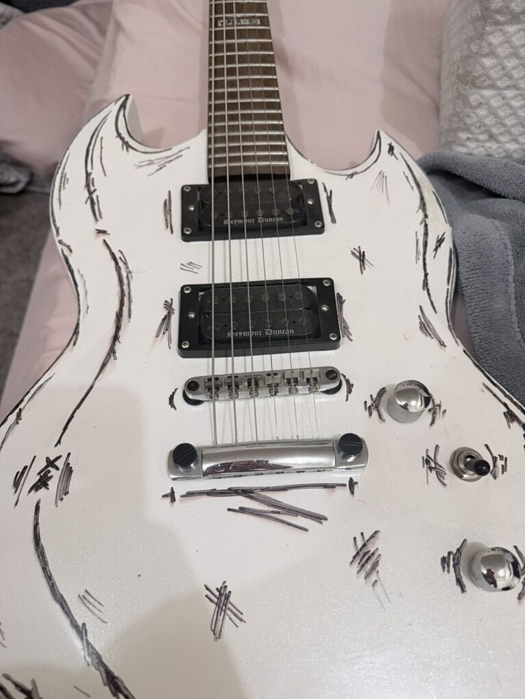 New wiring harness, and three way toggle, Seymour Duncan Black Winter pickups in the neck and bridge, locking tuners and new tune o matic bridge. Was just the empty body and neck when i got it. Plays fantastic but could use a professional setup. An amazing metal machine.