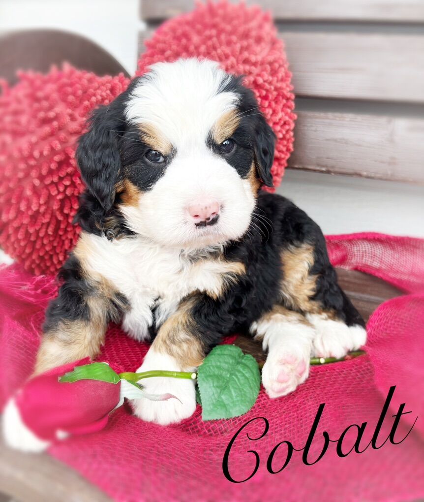 This mix gives you a higher percentage of the beloved Bernese Mt Dog, with less to no shedding and a longer life span. Bernese Mt Dogs are so sweet, goofy, and an all over amazing dog for any household. They are fantastic with kids of all ages, including infants. The mix with the poodle will help with less shedding, and possibly no shedding, they will have straight to wavy coats but much softer and easier to maintain. Poodles are also extremely smart which will pass on into these puppies as well.