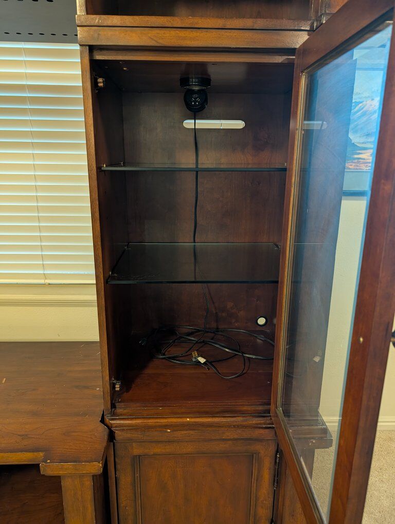 VenmoThis is a beautiful entertainment center needing a new home. It is 5 separate pieces, but very heavy. Overall dimensions are: 104.25 in x 78.5 in x 23.5 in. The two side tower pieces have glass shelves and lighting for decorative pieces, the cupboards on the bottom have drawers that pull out. the doors to the cupboards of the middle base section have been removed for open storage. This piece has been well loved, but would make a beautiful addition to your living space. $400 OBO. Make me an offer!