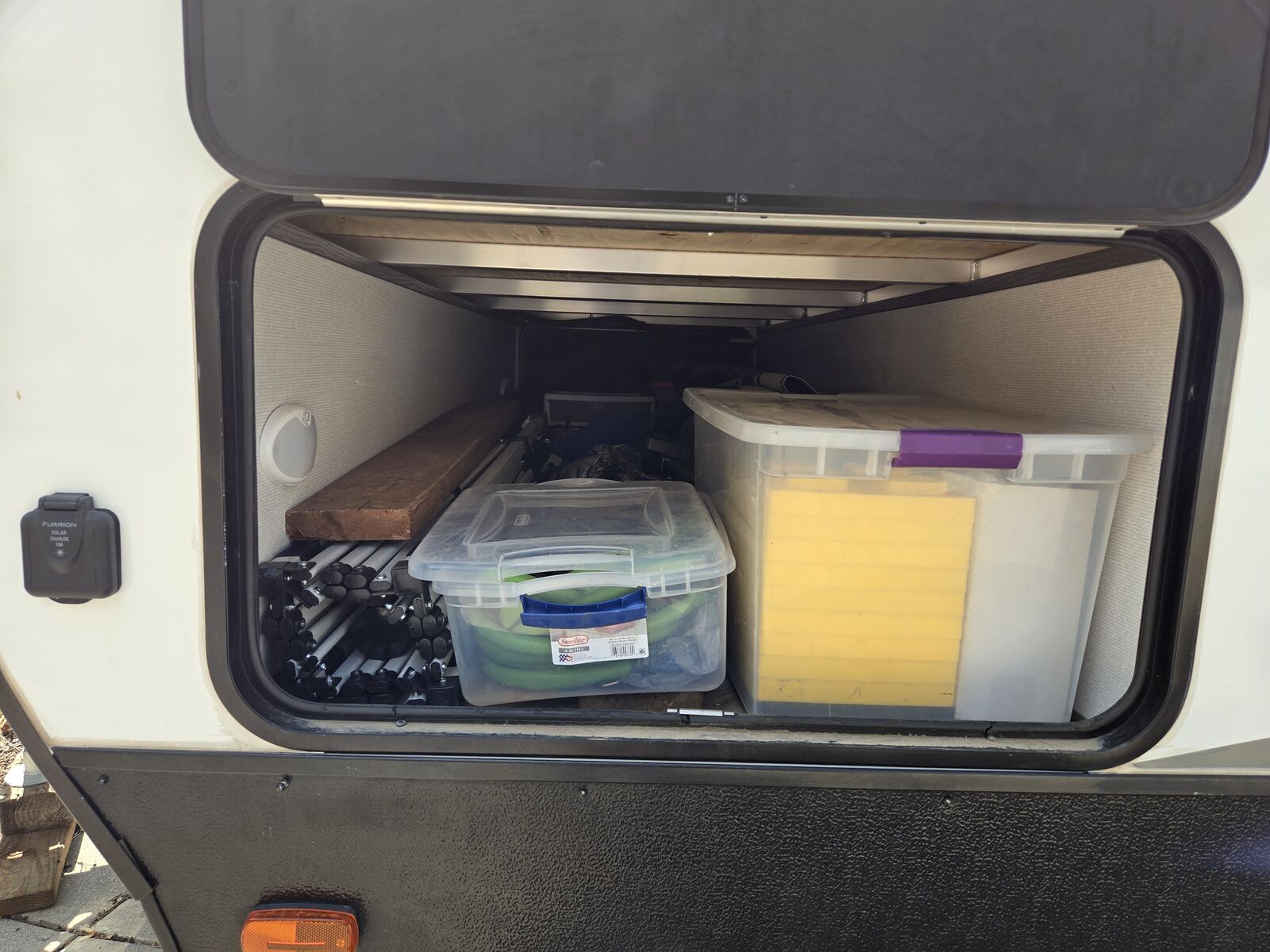 ZelleGreat Condition! Light weight, 4725 lbs! One slide out with double recliners and an optional table that you can slide in or out, full size fridge, microwave has been used once, never used oven, both in amazing condition! Lot's of storage space. Inside/outside speakers, canopy is in great condition, outside lights, fits a king size mattress. USB outlets, T.V. hookups, electric jacks. Air conditioner and heater work great, too! Asking $19,000