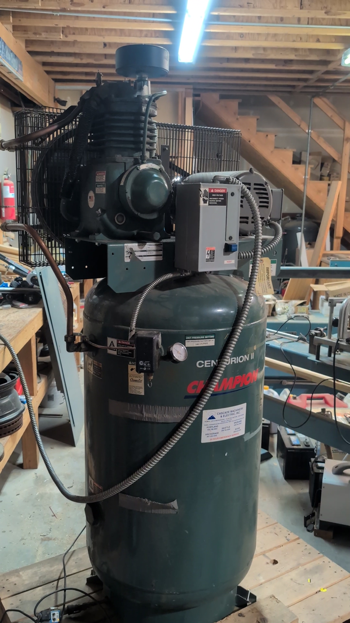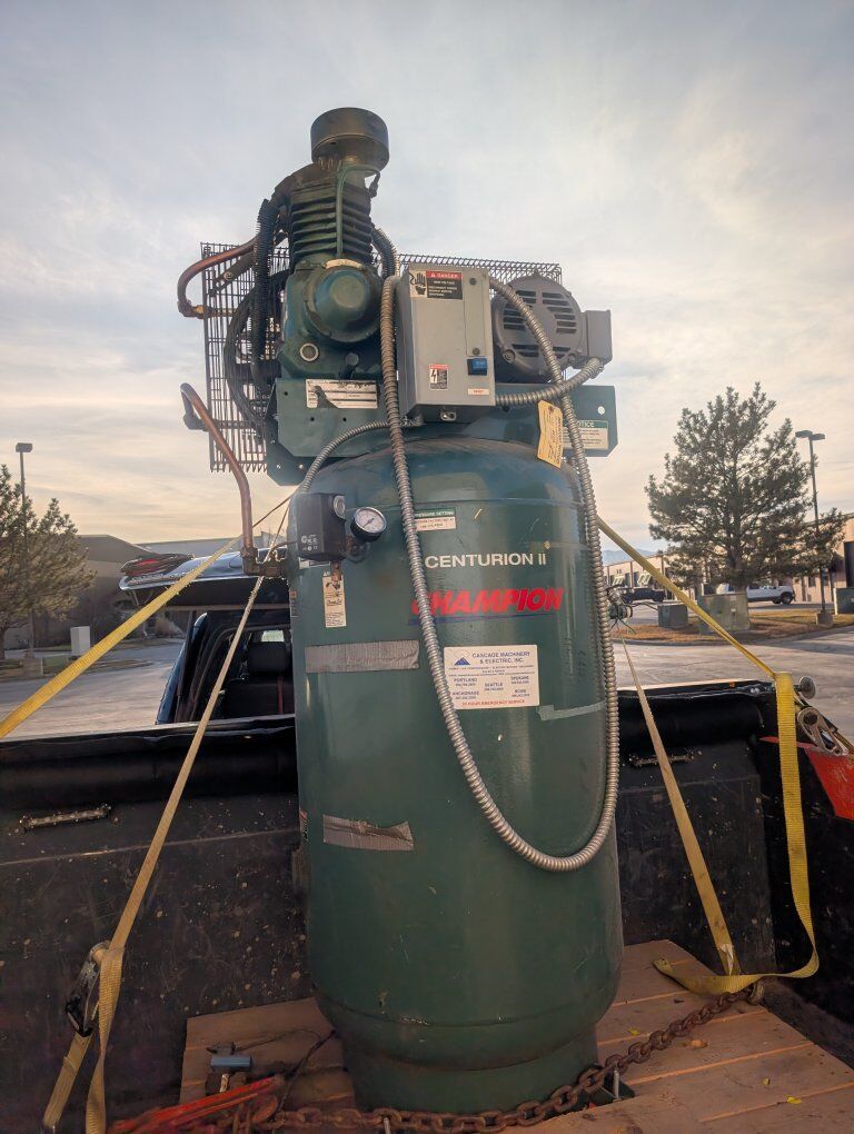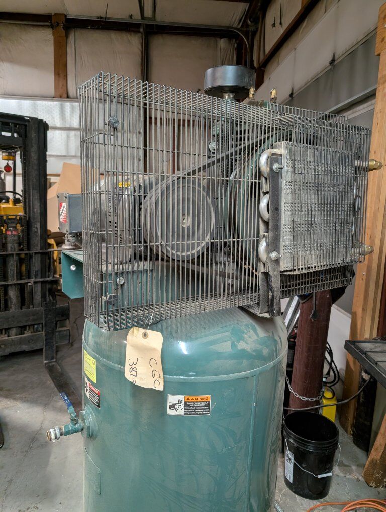 Super heavy duty industrial three phase air compressor. This thing is an absolute workhorse, two-stage compression for high PSI on an 80 gallon tank. It has an auxiliary air dryer that cools the air before discharging it into the tank. it was retired from a machine shop because they had two compressors, and wanted to upgrade to one screw compressor. there's nothing wrong with this one it just had a fresh oil change and is it good to put right back into service.
