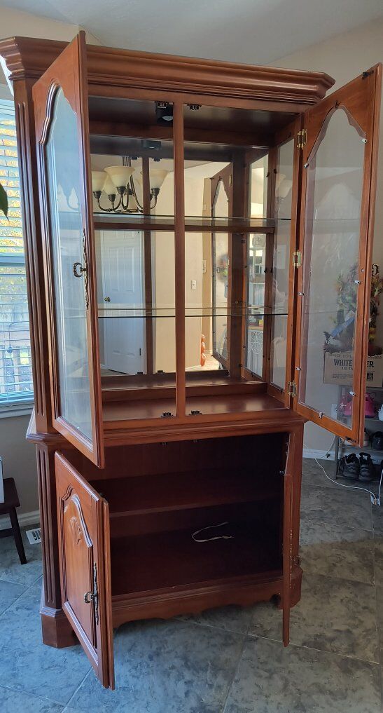 Beautiful china hutch/cabinet. Excellent condition, has a light inside. It's two pieces. $250 obo