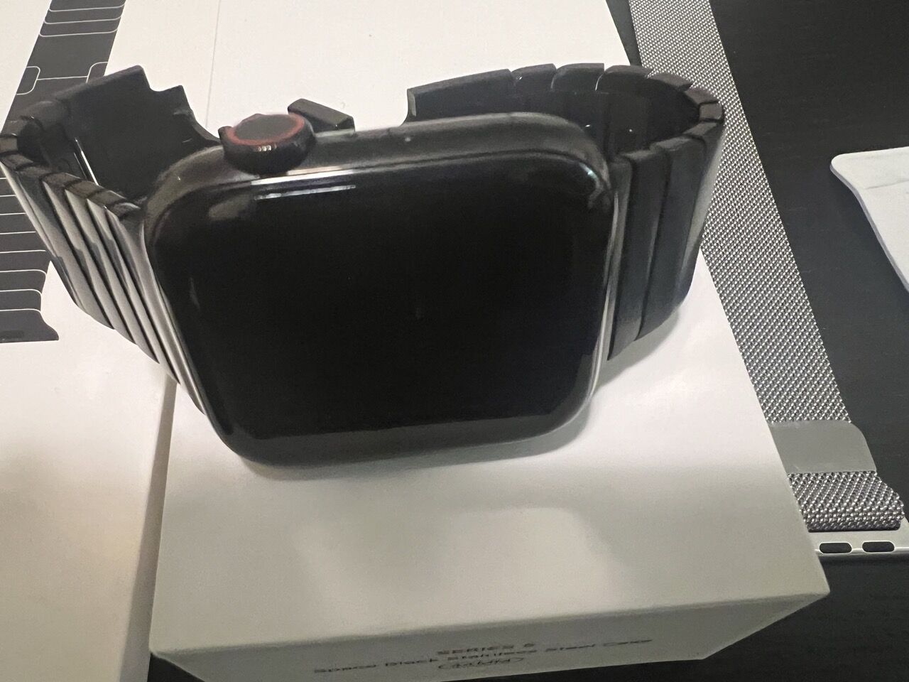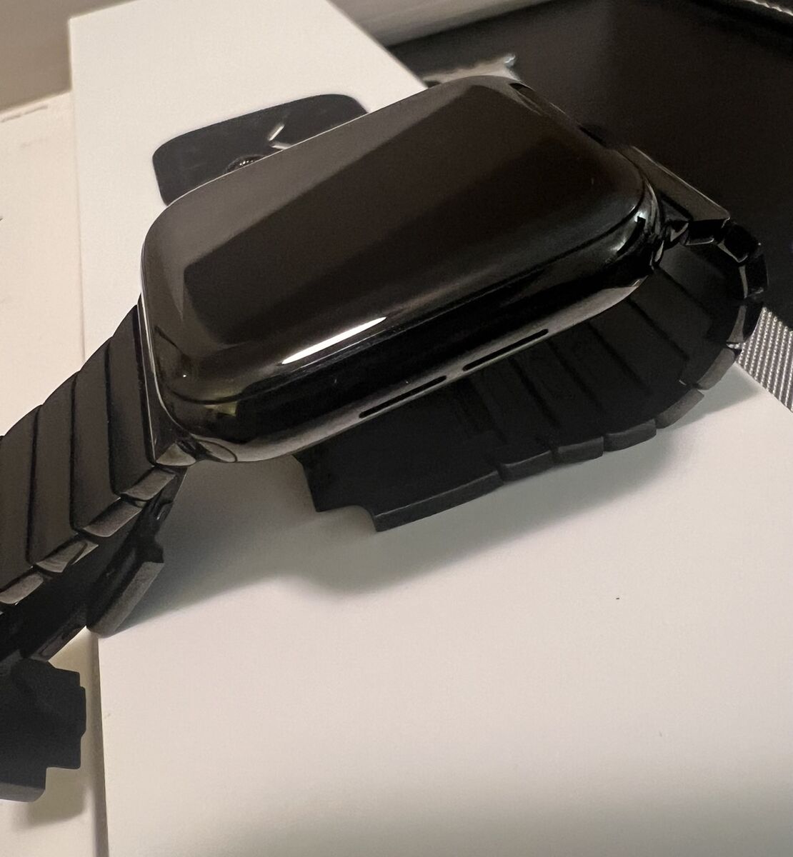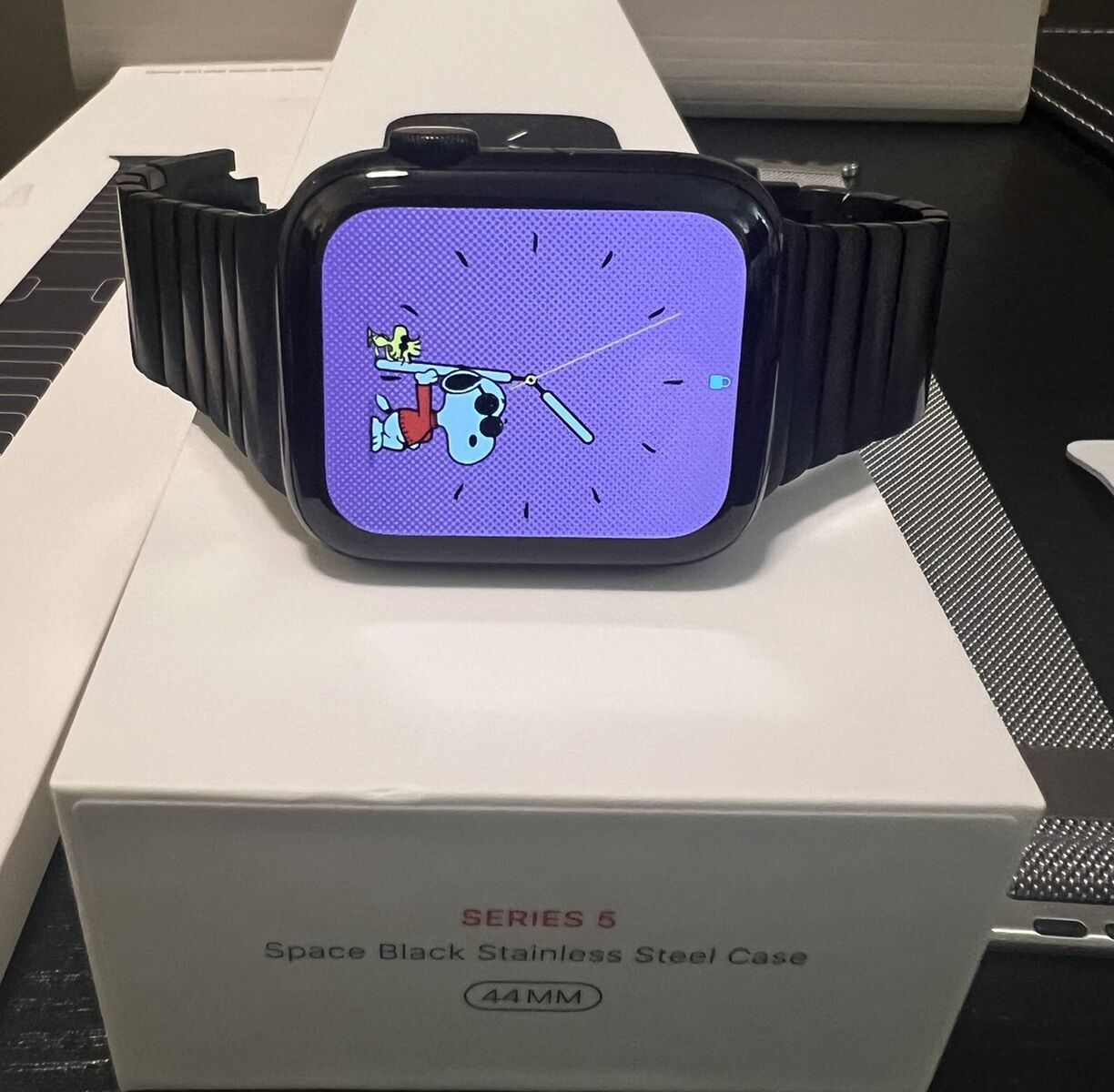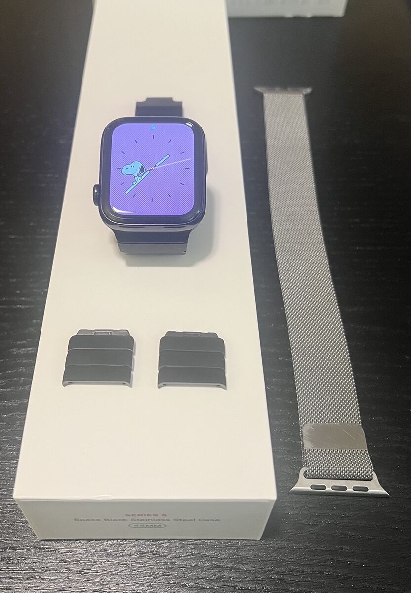 VenmoModel: MWQQ2LL/A Premium stainless steel Apple Watch Series 5 (not aluminum) with GPS + Cellular. This higher-end model features a sapphire crystal display, polished space black finish, and always-on Retina display. Included Bands Apple Space Black Steel Link Bracelet (original Apple band — ~$150 preowned value on its own) Bonus: Silver mesh Milanese-style stainless steel bracelet (third-party, not Apple brand) Specs 44mm case Space Black Stainless Steel GPS + Cellular (carrier-ready) Always-On Retina display Swim-proof water resistance Condition Screen is scratch-free Battery Health: 69% (still holds charge; battery replacement options if buyer wants extended daily runtime) Fully functional Light cosmetic wear on the case consistent with normal use Crown, buttons, touchscreen, and sensors all work properly Notes Includes USB Charging Cable