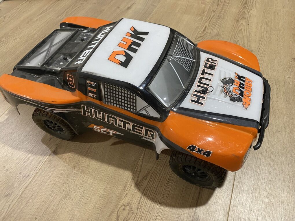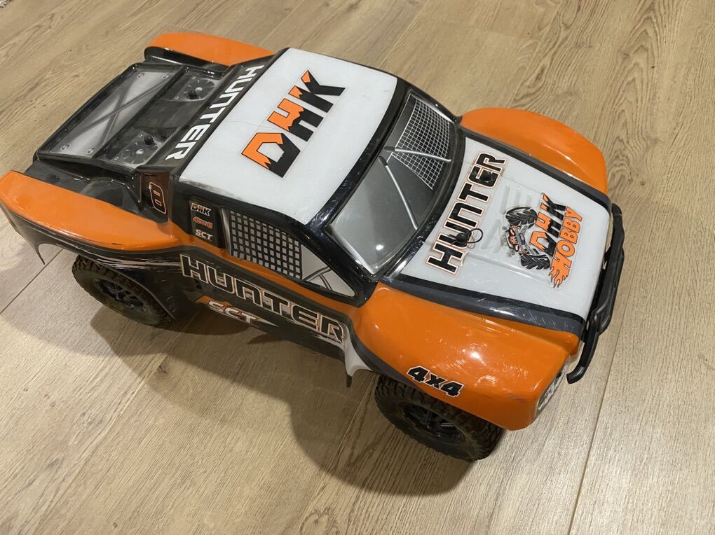 PayPalGreat condition RC Trophy Truck. Does not include batteries (cells died) but selling with charger. Missing body clips