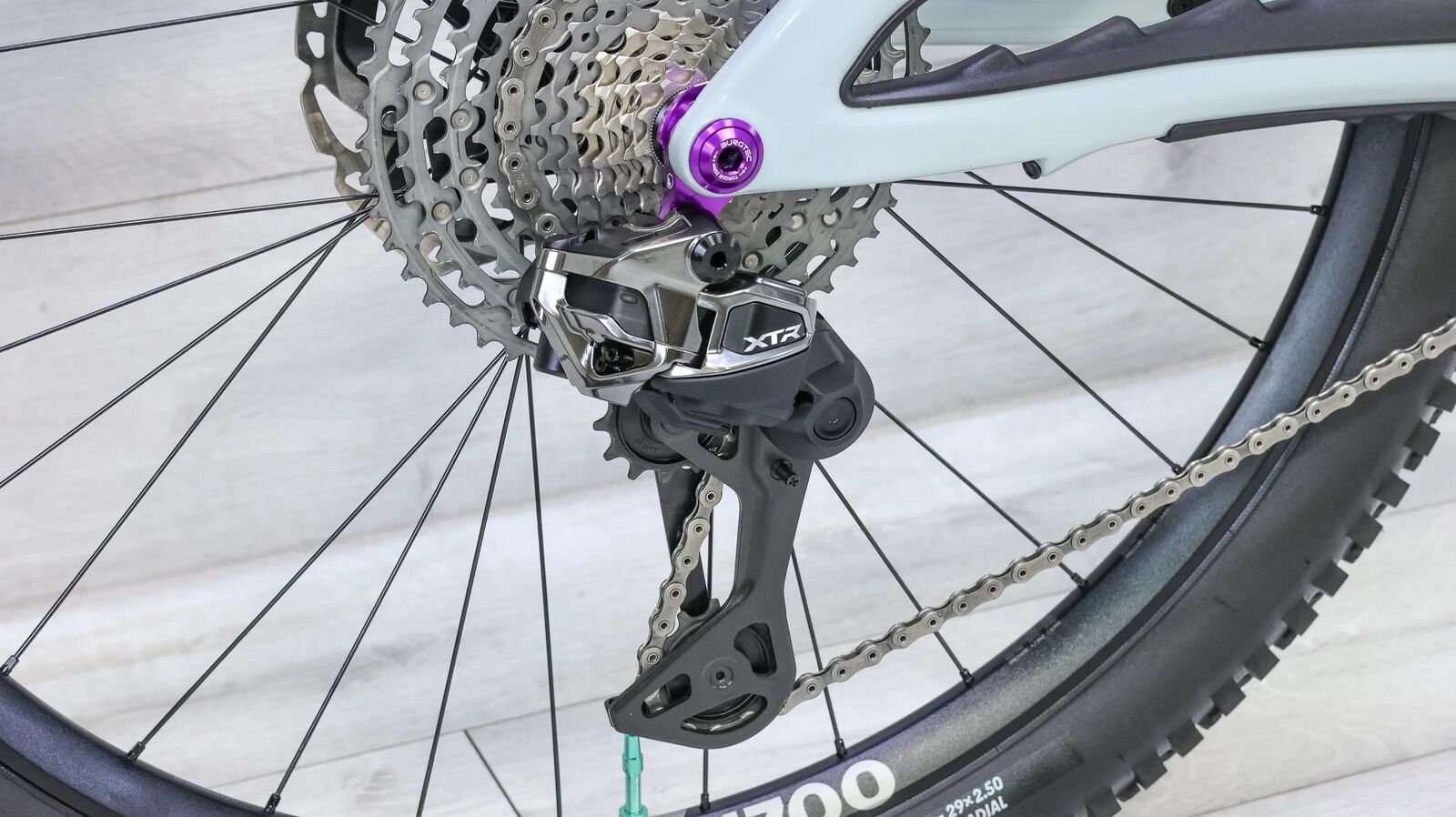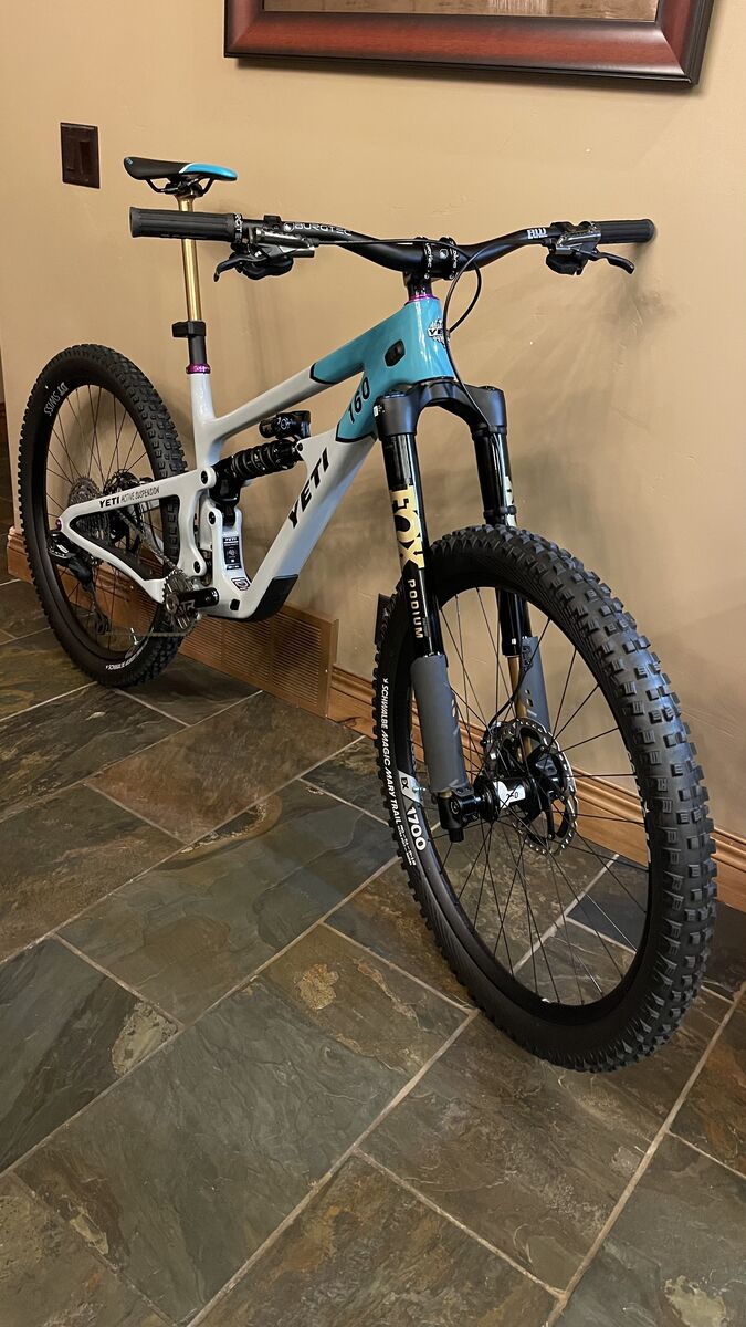 Brand New Team Edition Only 100 of these were built Year 2025 Weight 36 lbs 9 oz Brand Yeti Model SB160 Turq Series 40th Anniversary Team Edition Color Blue, Gray Size Large Frame Material Carbon Fiber Drivetrain 1x12 Fork Fox Factory Podium, GRIP X2 Damper Fork Travel 170mm Rear Shock Fox Factory DHX Libe Valve NEO SLS Spring Rear Shock Travel 160mm Handlebar Burgtec Ride Wide Enduro, Alloy, 800mm Brakes Shimano XTR M9220, Hydraulic Disc Brake Type Disc, Hydraulic Stem Burgtec Enduro MK3, Alloy, 50mm Shifters Shimano XTR M9250, Di2 Front Derailleur N/A Rear Derailleur Shimano XTR M9250, Di2 Cassette Shimano XTR M9200, 10-51T Crankset Shimano XTR M9220, 165mm Chainring Shimano XTR, 30T Seatpost Fox Transfer Neo Factory, 200mm Travel Dropper Saddle Burgtec Cloud MK2 Team Wheel Size 29" Wheel Set DT Swiss EX 1700, DT Swiss 350 Hubs Front Tire Schwalbe Magic Mary Trail Pro, 29x2.5 Rear Tire Schwalbe Albert Trail Pro, 29x2.5 Bottom Bracket Threaded Charger Included Yes