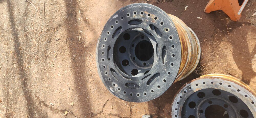GooglePaySet of four wheels with rings and hardware. Only 3 wheels in picture but, I have 4. Probably missing a few ring bolts that are easy to find. All four held bead at 6psi on 35s.