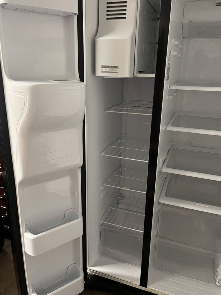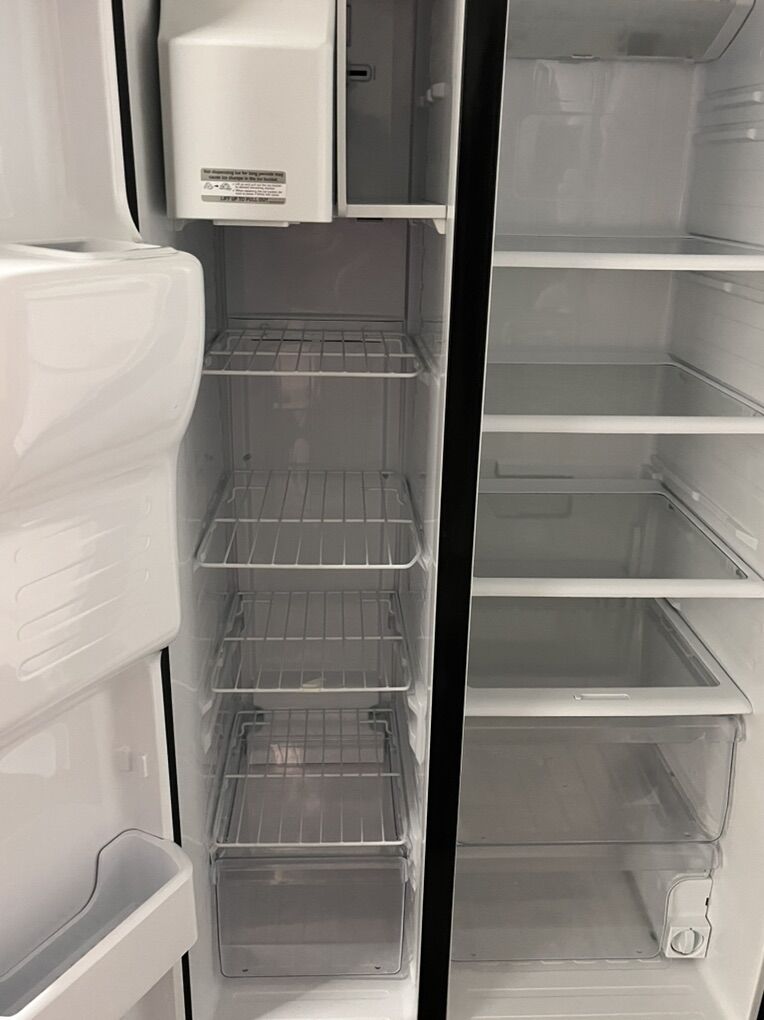 Very clean Samsung refrigerator. Works great and cools perfectly. Only a few minor cosmetic dents.\