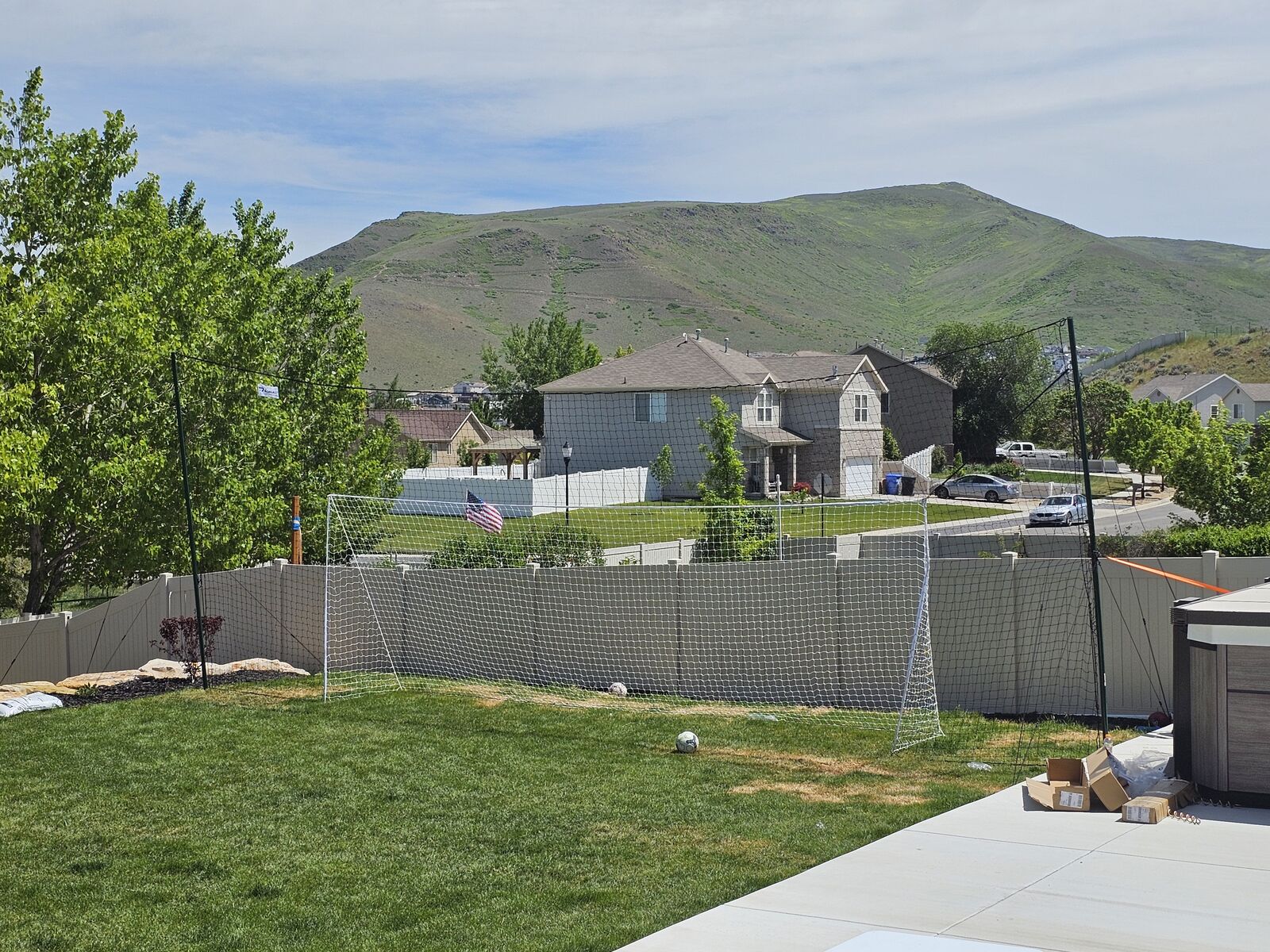 We are selling our used OpenGoalUSA regulation size goal with backstop. We had this setup in our backyard, but took it down for winter. The nice thing is that it is already down and ready to be taken home by someone else. The downside is that you can't see it setup. This was a great purchase for us and our boys used it all the time. Our boys are aging out of soccer and we are moving and do not have the space for this in our new yard, so we are forced to sell it.