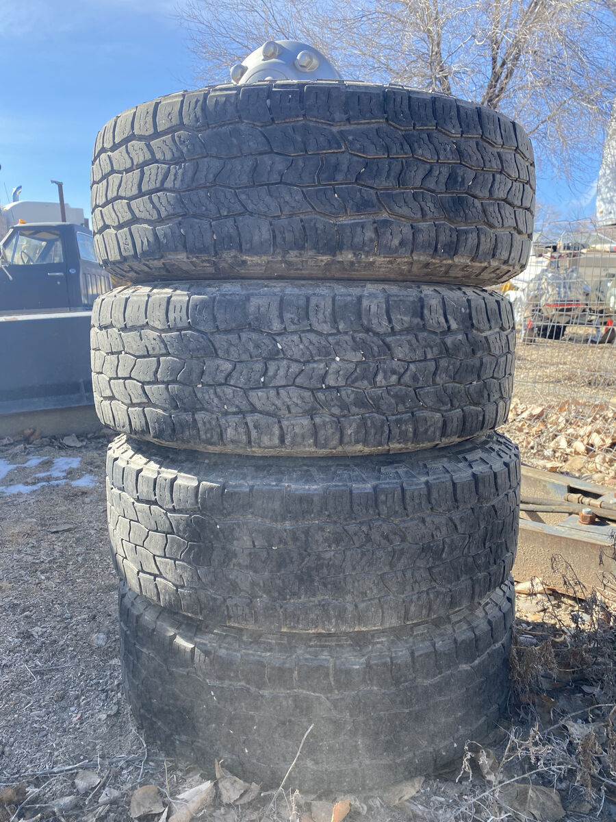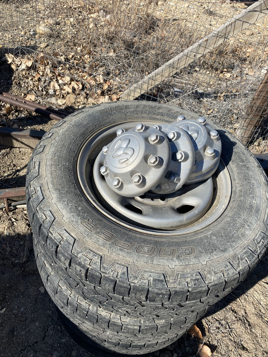 245/70/17 Cooper Discovery tires with about 25% tread left, no plugs or leaks.