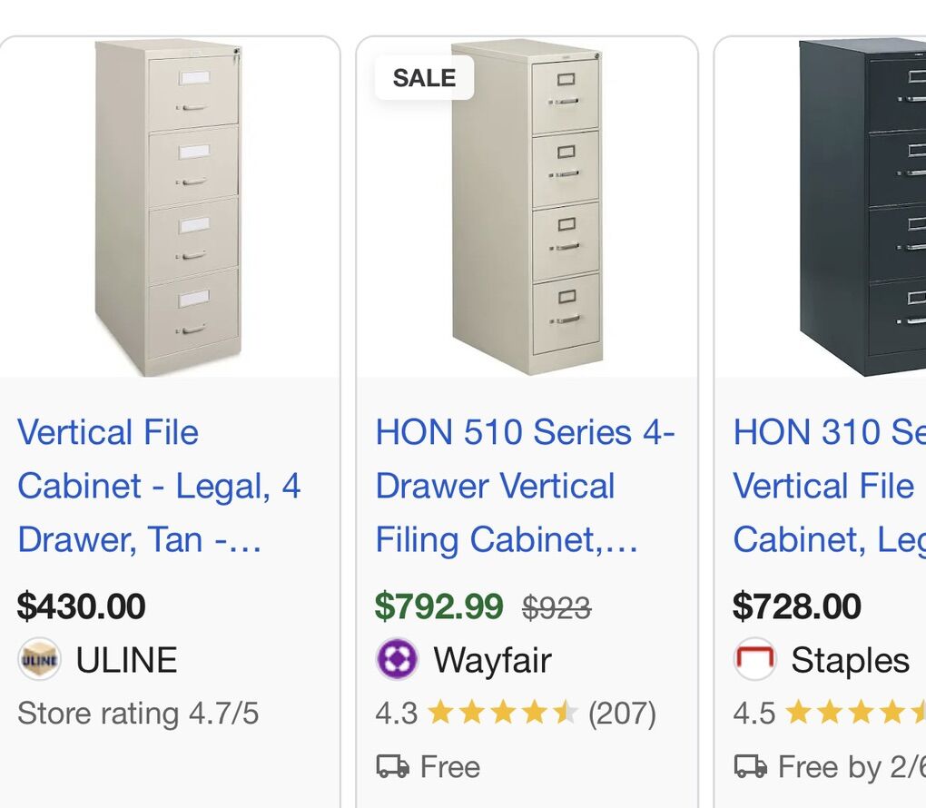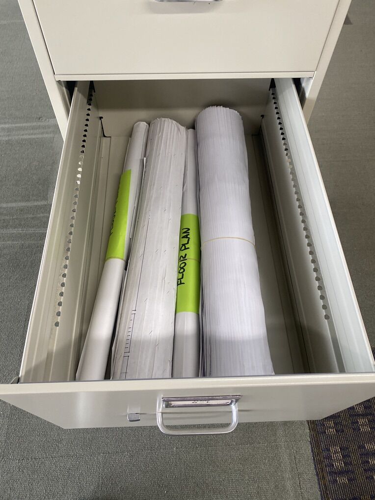 Venmo4H Deep Metal Filing Cabinet 26-5/8”D x 18-1/4”W x 52”H Deep to fit architectural plans, legal Minor scratch on top- see photo Online prices >$400-$700