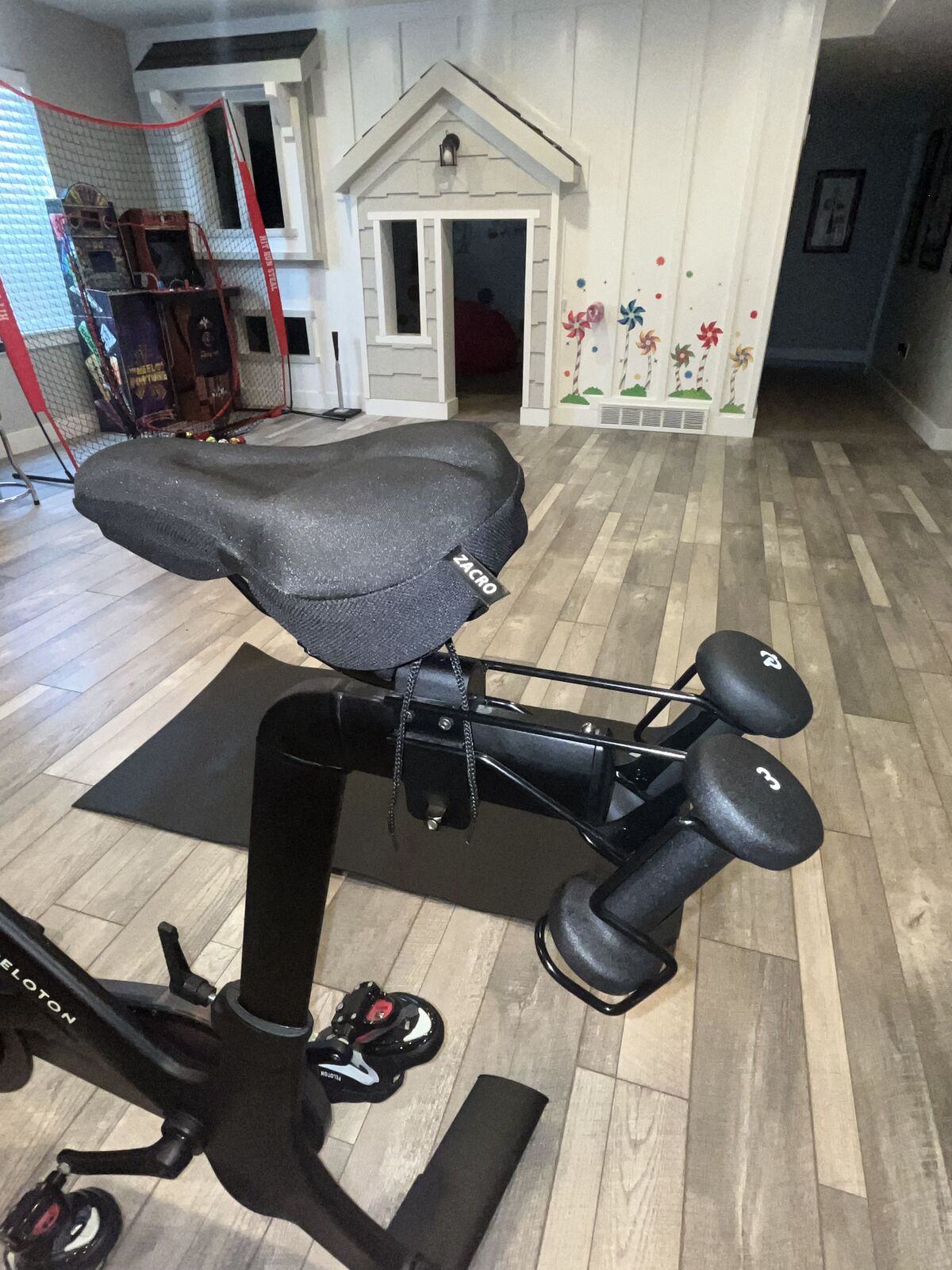 Bonus: I am going to generously throw in my official AF Peloton Cycle shoes (size 41...whatever that equates to), a laptop tray so you can multitask...aka work while working out...or watch reruns of Beverly Hills 90210, a cushion for your tush, a cell phone tray, AND the Peloton bike mat. It also comes with two 3-lb weights, so you can fire up those bi's and tri's! Let’s be honest, is there anything this bike doesn't come with?