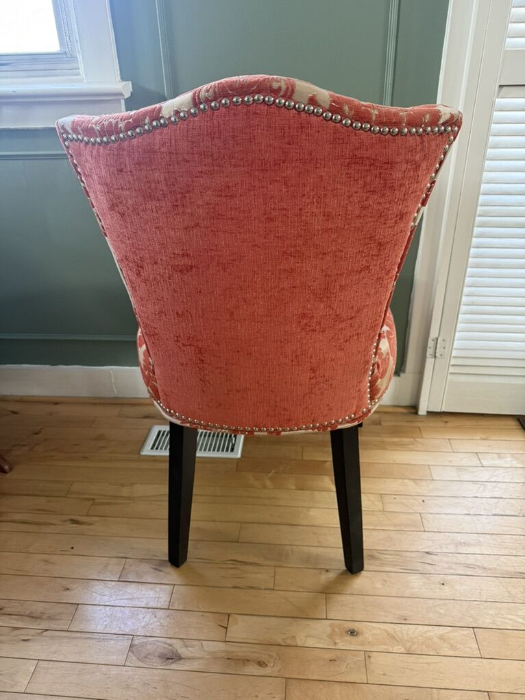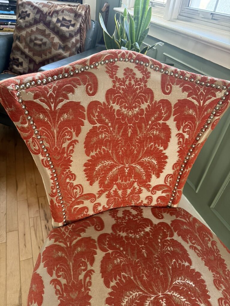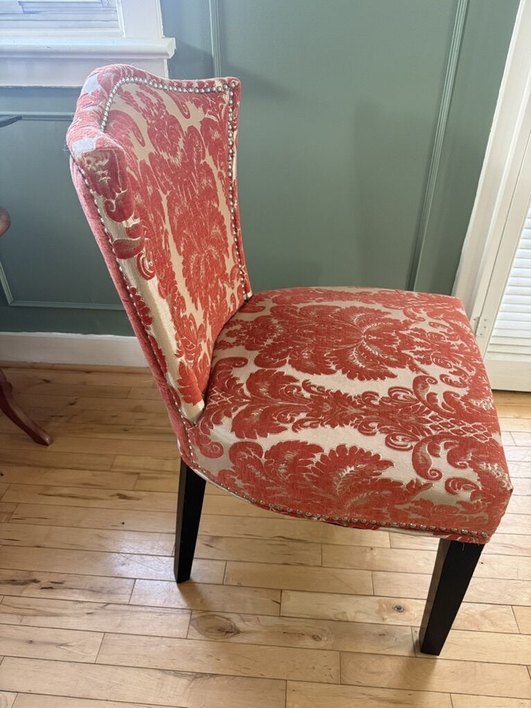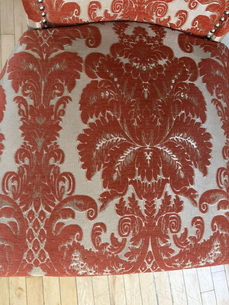 VenmoMid-century modern upholstered chair in burnt orange floral pattern. Just redecorating so I longer needed. Hardly sat on, excellent condition.