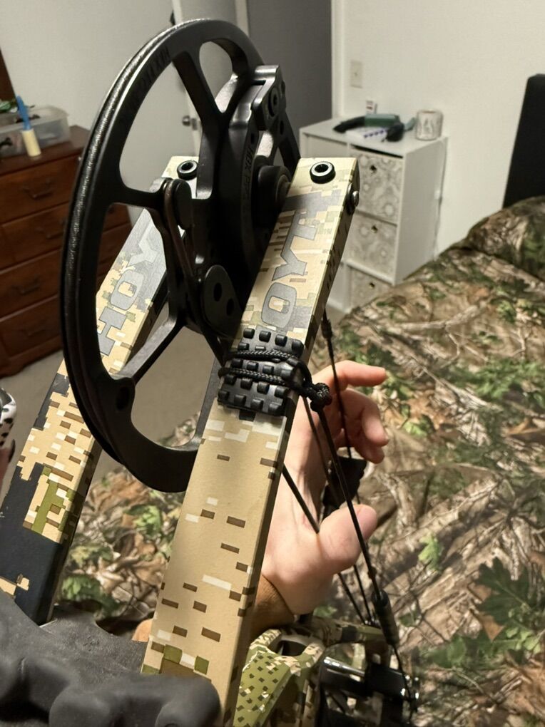VenmoBare bow, hardly shot it and ended up putting a custom built bcy bow string my pro shop guy built on. Barely had 5 arrows with the stock string and my pup was lightly chewing on it. Didn’t take the chance just had a custom string put on. Shot roughly 20-30 arrows with the new string and bought a new bow. Bow has never been dry fired. It’s almost brand new but time to clear out some space. 550$ obo