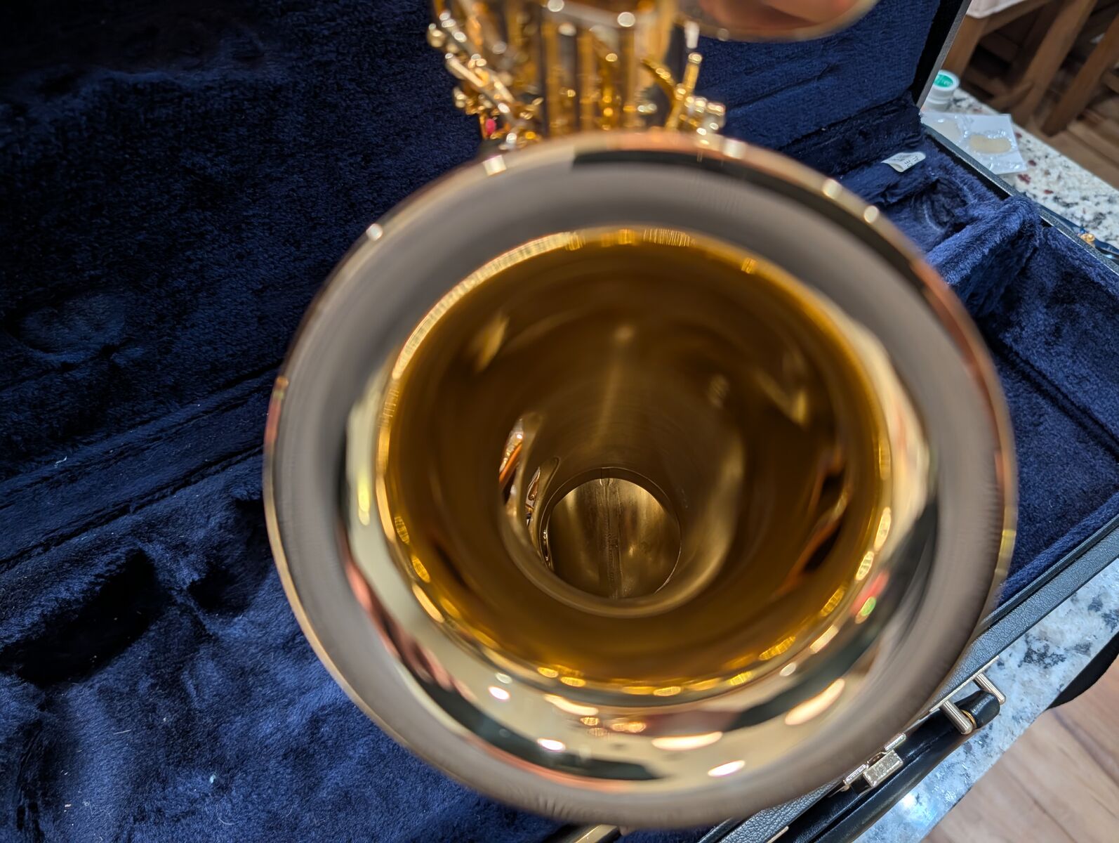 This professional saxophone is in excellent condition. All buttons and keys work smoothly, and the pads are in great condition. There are very minor signs of wear.