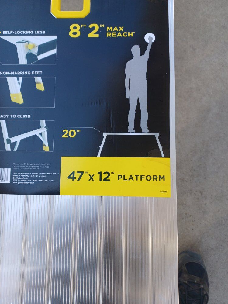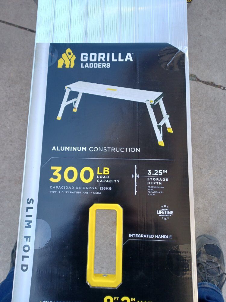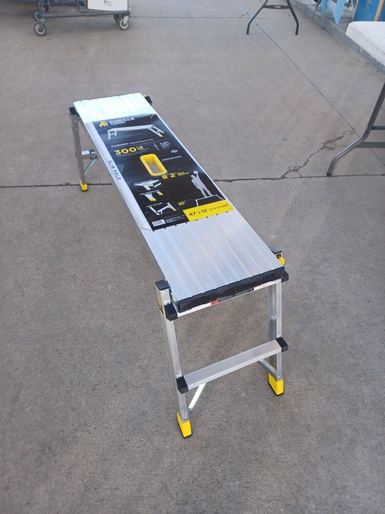 gorilla 4 ft x 12-in x 20 in aluminum slim fold work platform, 300 lb load capacity brand new any questions please message me