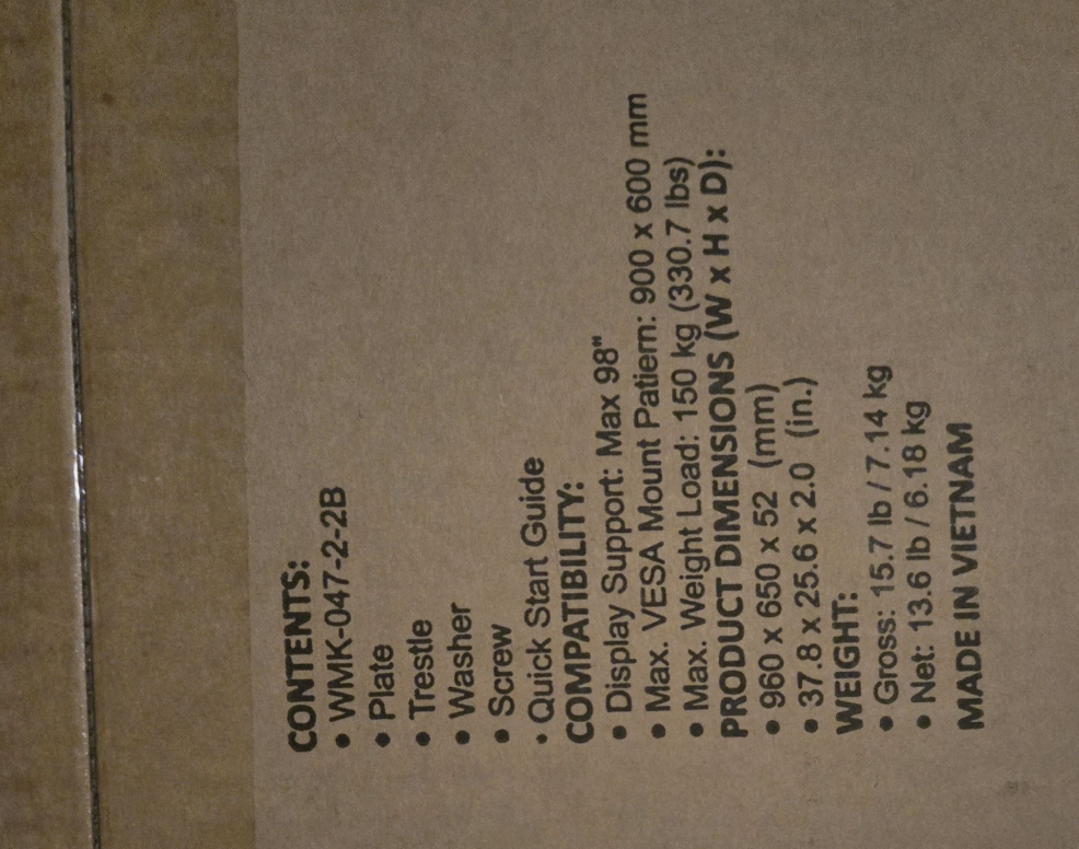 VenmoViewsonic WMK-047-2-2B TV Mount. Can hold up to 98" Display and up to 330 lbs- Brand new in the box. I have several available so if you need multiple let me know and ill give you a deal. Pick up in Spanish Fork. Cash or Venmo accepted.