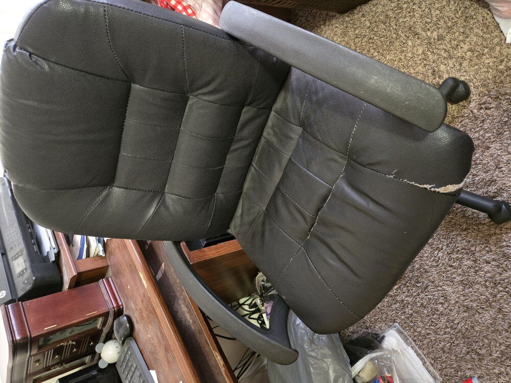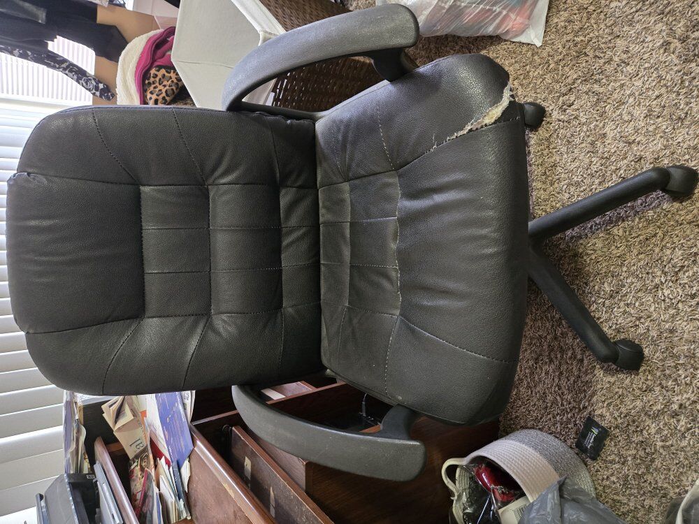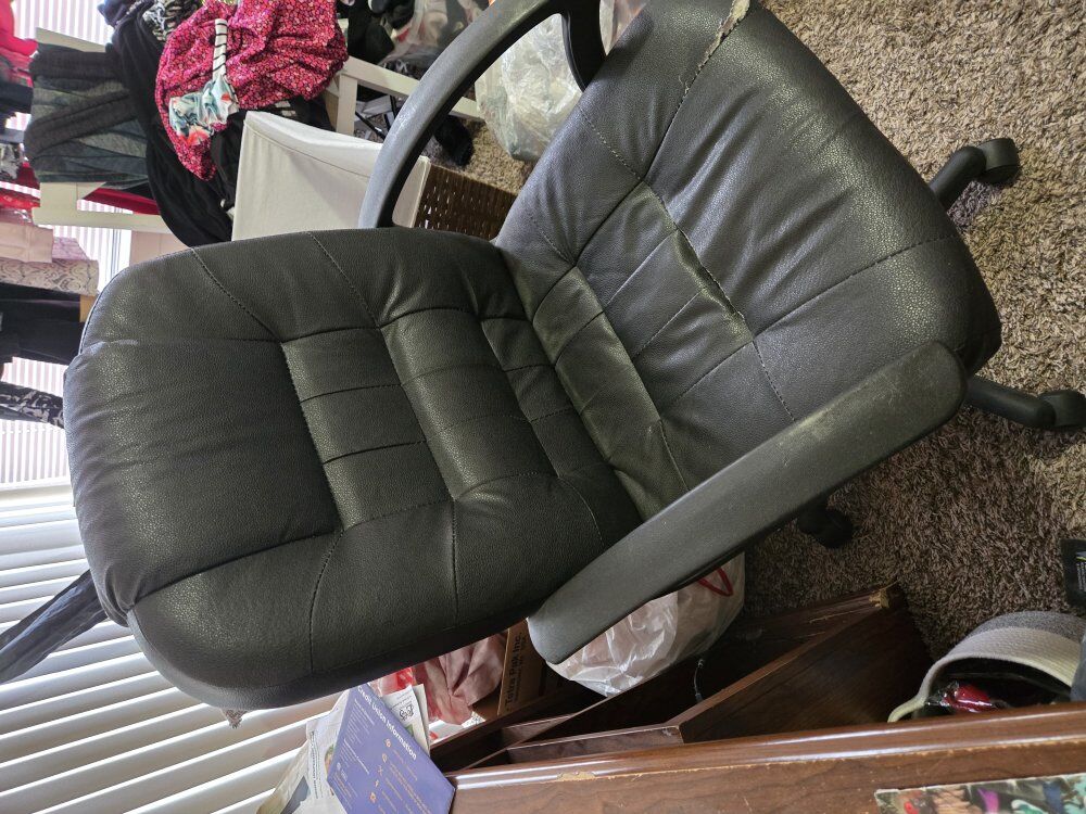 Black leather office chair not needing anymore. Smoke free and pet free household. Asking $20 for it. Located in Bluffdale. No PayPal or Venmo. Cash only. Pick up only. Message if interested. Thank you.