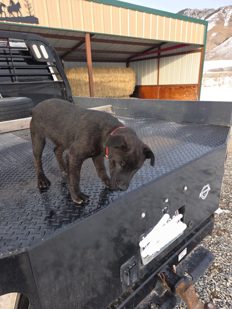 Venmomale patterdale terrier pup. He will be 5 months old the middle of this month. Born Sept. 19, 2025. He is dark chocolate and very friendly. He loves to hunt and has a good nose for it. 400 OBO Dale