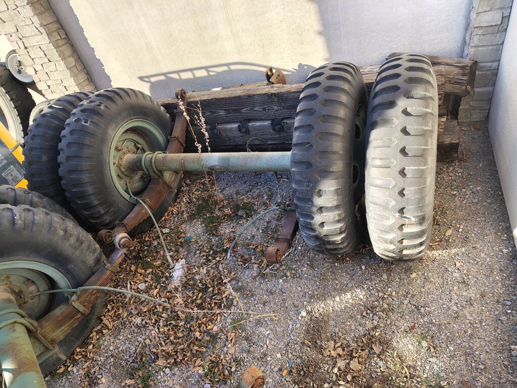 axles off of military trailer M200A1 each axle is rated for 9,000 lb hydraulic brakes. 20-in Bud wheel will replace the original military single wheel only.