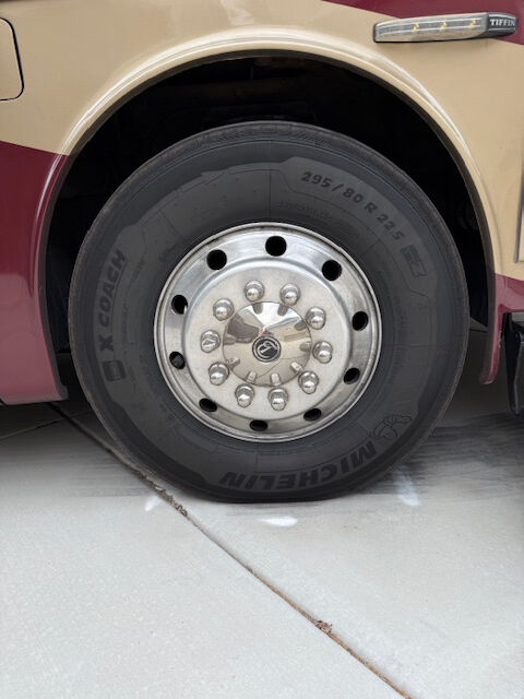 · June 2025 – two new steer (front) tires (Michelin X Coach tires)