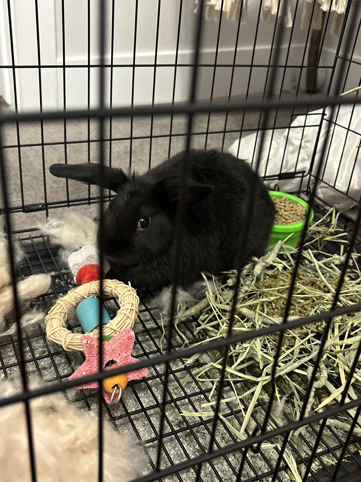 VenmoToby is the sweetest, easiest,loyal bunny you will every meet! We have 3 female rabbits and Toby is alone is a different cage and dose not get as much attention as he deserves! He is timid at first but then very loving and loyal. He is very low maintenance and just needs love. He is a 2 year old male dwarf rabbit and needs loving home! He is mostly little box trained and is easy to teach new things to. He is great with other animals including dogs. All he needs is to be let out once a day and fed twice a day! when he is done playing he normally go back into his cage home self. He does not need a ton of attention but he does do well with about 10 minutes of snuggles a day. Message to meet him and make sure it’s the right fit! If you are him are a good fit you can take all of his stuff and that includes his cage, toys, blanket, litter box, food bowl, and as well as some food for him!