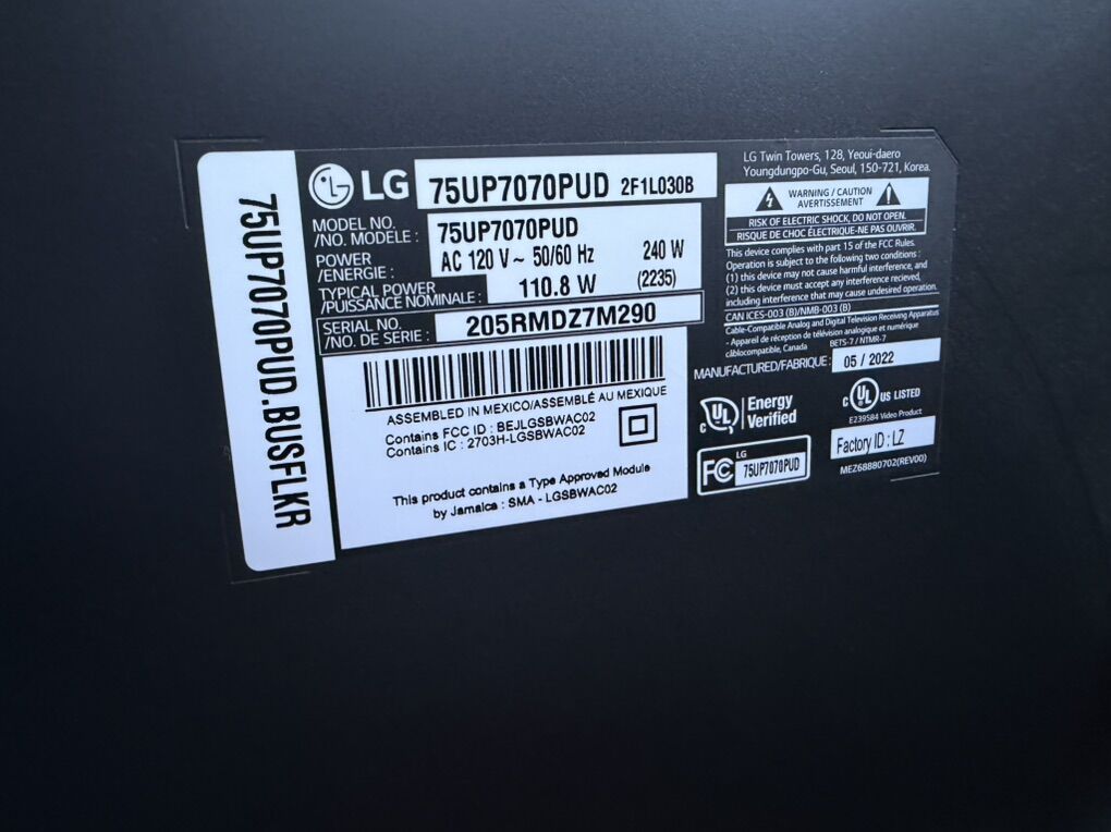 VenmoUsed LG 75 Smart TV and Mount.