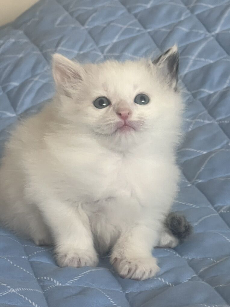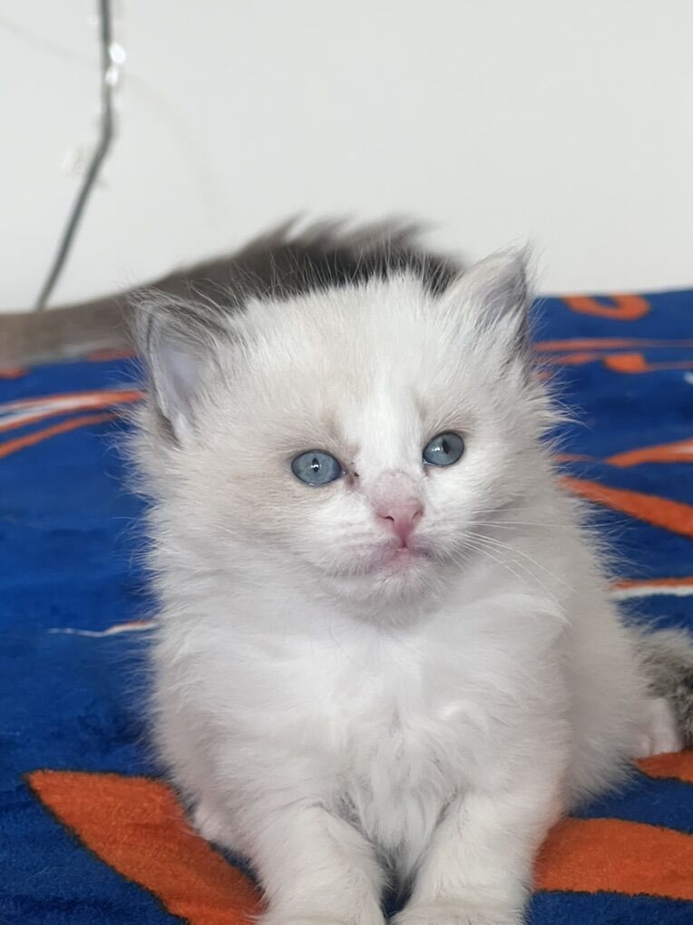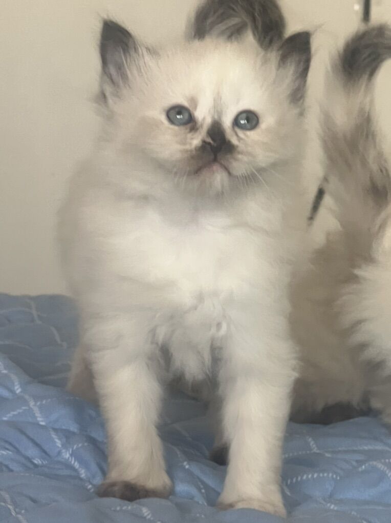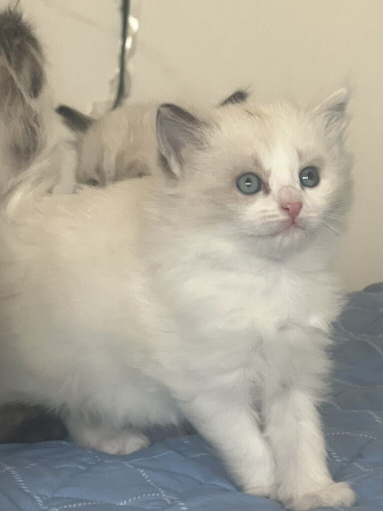 About the kittens: • Raised indoors in our home with their mother • Handled daily — picked up, played with, and loved • Very social, friendly, and human-oriented • Calm Ragdoll temperament • Soft, fluffy coats • Stunning blue eyes