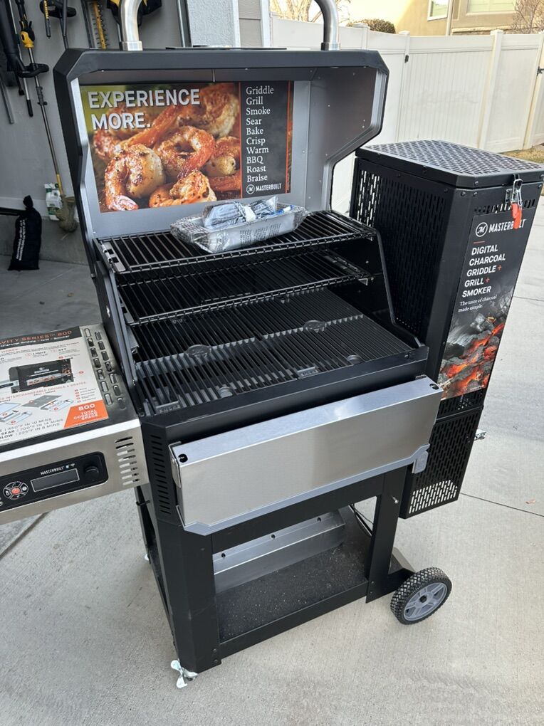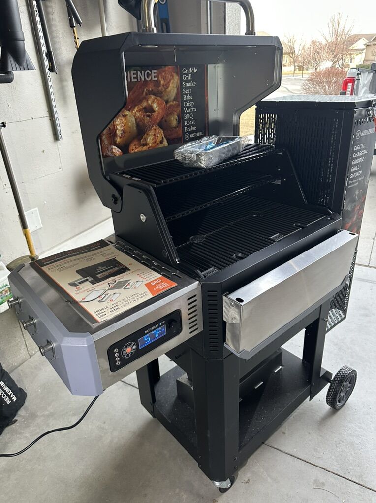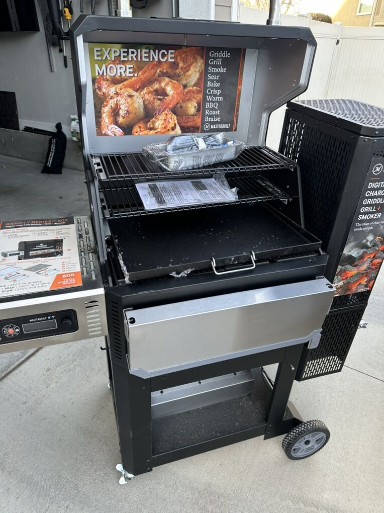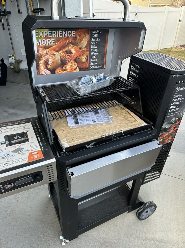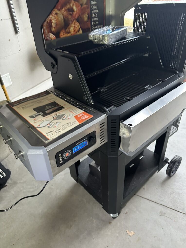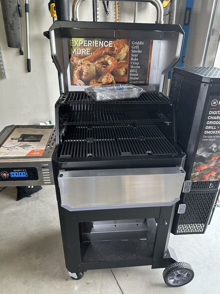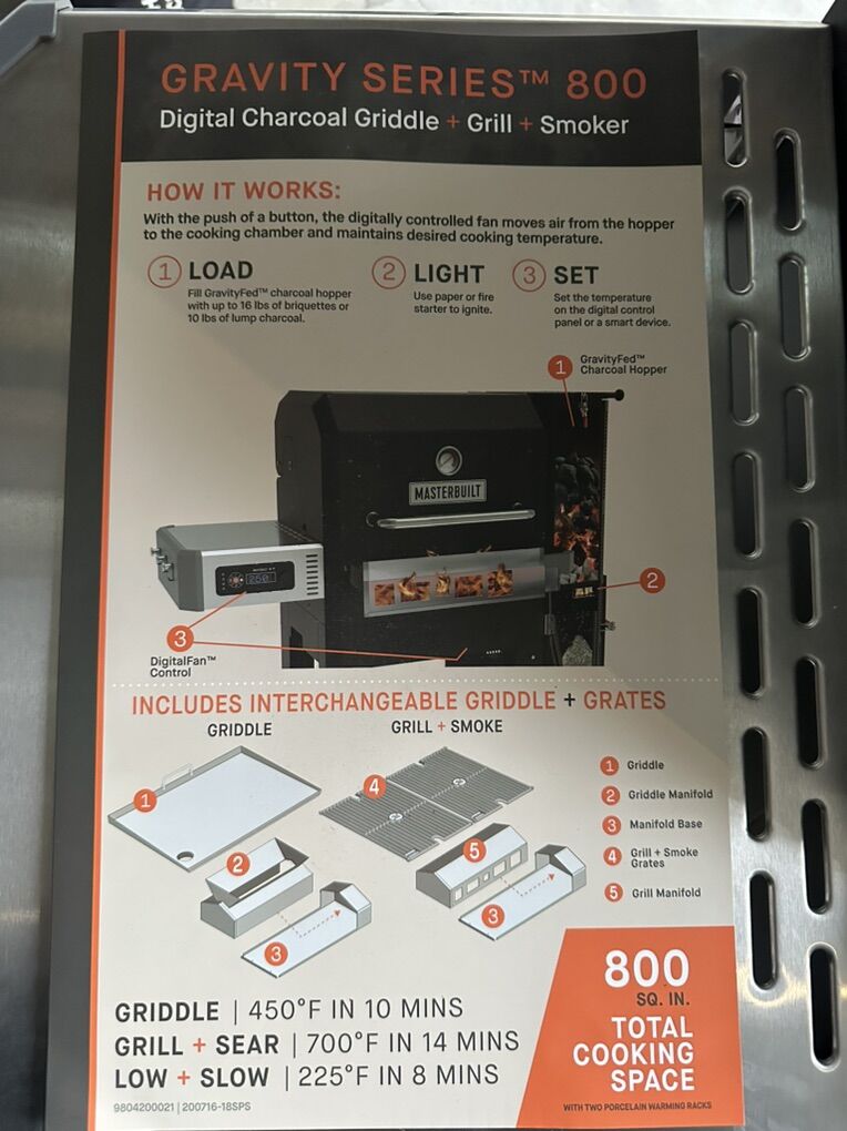 VenmoNew, never been used. Masterbuilt 800 digital charcoal grill/smoker. It also comes with a griddle. These are similar to Traegers but they use charcoal instead of pellets. I’ve got the bigger version of this that I’ve been using for 3 years and it’s been the best grill I’ve ever had!!