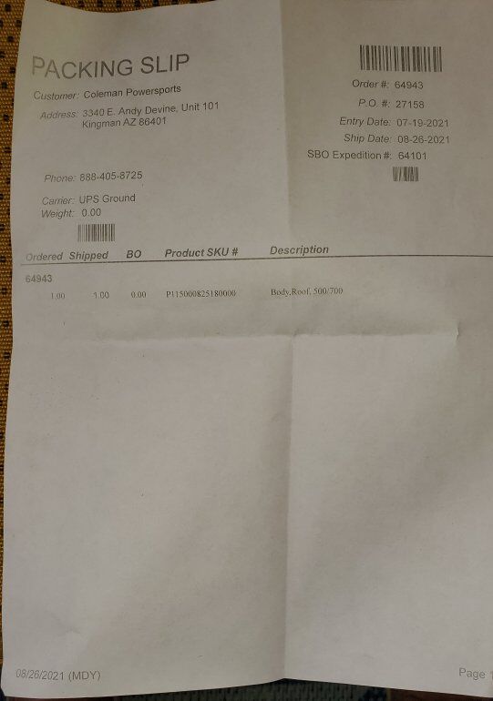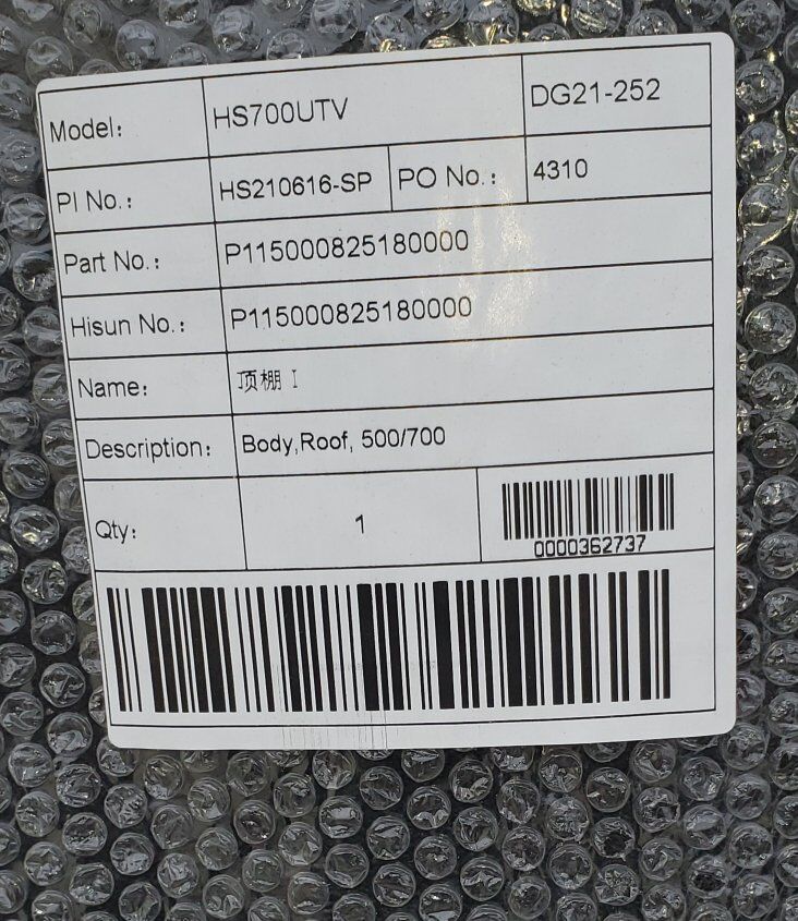 Zellethis came with my Hisun UTV UT400-RT. it doesn't fit. at one sticker it says 500/700. the numbers are in the pictures. Cal Ranch and Tractor companies sold these. this roof was in a sealed box and took out only for pictures. please call or text 702-373-0716. I'm looking for a sticker kit Real Tree and a new roof also.