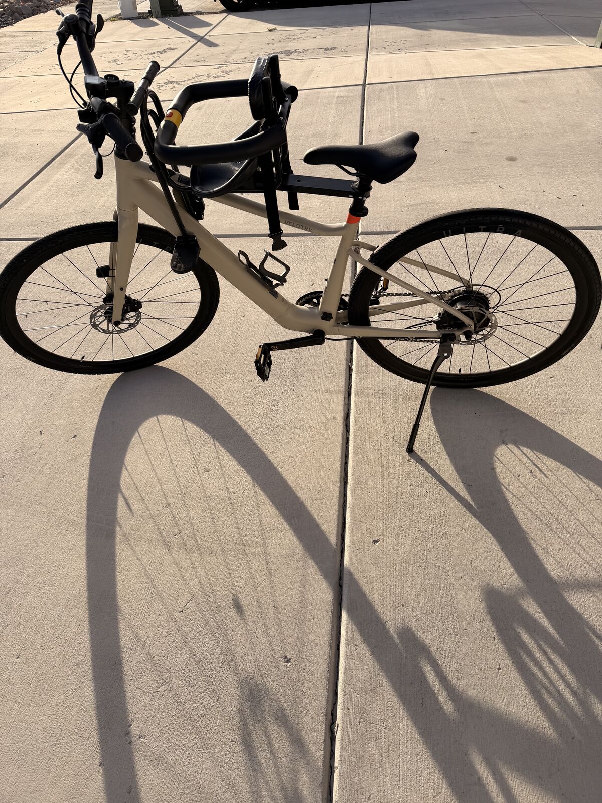 ApplePayGreat deal on a slick, lightweight commuter electric bike — originally around $1,400 new. This one’s in excellent condition, just a few rides on it! Why this bike rocks: • Class 1 e‑bike — pedal assist up to 20 mph for effortless city and neighborhood riding. • Lightweight design (~36 lbs) makes it easy to carry, park, or load up. • Powered by Velotric’s smooth 350W motor (600W peak) and torque sensor — natural, responsive assist. • Up to ~52 mile range on a single charge — great for commutes or weekend rides. • Works with Apple Find My so you can keep track of it. • Sleek integrated battery and cables for a clean, “non‑e‑bike” look. Included with sale: • Original charger • Tool kit • Currently fitted with a kid seat (easy to remove if you prefer) Asking $840 OBO — priced to move! Perfect for commuting, errands, fitness rides, or just cruising around town. Message me to check it out or make an offer! commuting, newish, Velotric, T1 ST, electric bike, e-bike, Class 1 e-bike, pedal assist, commuter bike, mid-drive motor, lightweight e-bike, obo, Deal, Steal, electric, trades, working, work,