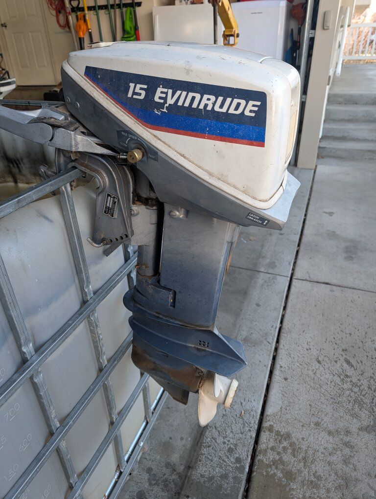 VenmoEvinrude 15 HP Outboard – Model 15504C a classic 15 horsepower, 2-stroke outboard motor. New fuel pump and fuel hoses. Carburetor just cleaned.