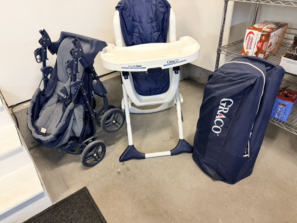 VenmoGraco Playpen, Stroller And High Chair. We also have a diaper bag and chair booster seat, if wanted.