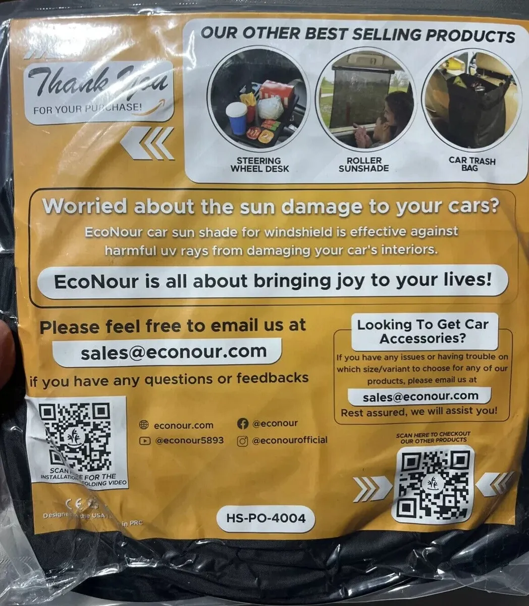 Introducing the EcoNour Foldable Circle Car Windshield SunShade, the perfect addition to your car accessories! This sunshade is designed to fit most car windshields with its universal fitment feature. It measures 64x32 inches and is brand new, never used before. Made by EcoNour, this sunshade is a great way to protect your car's interior from the heat and glare of the sun. It can be easily folded and stored away for convenient use.